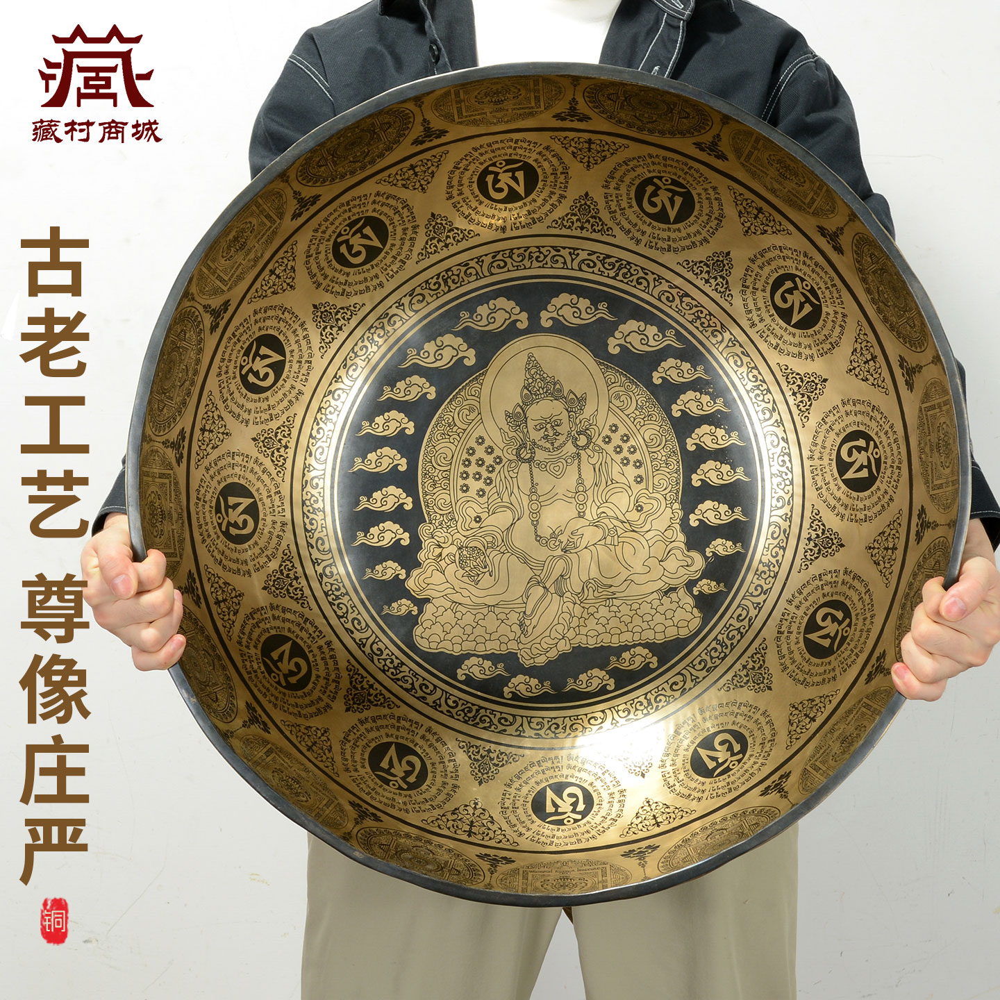 藏村黄财神大钵雕花颂钵瑜伽冥想钵静心铜钵佛像颂钵钵音碗钵盂
