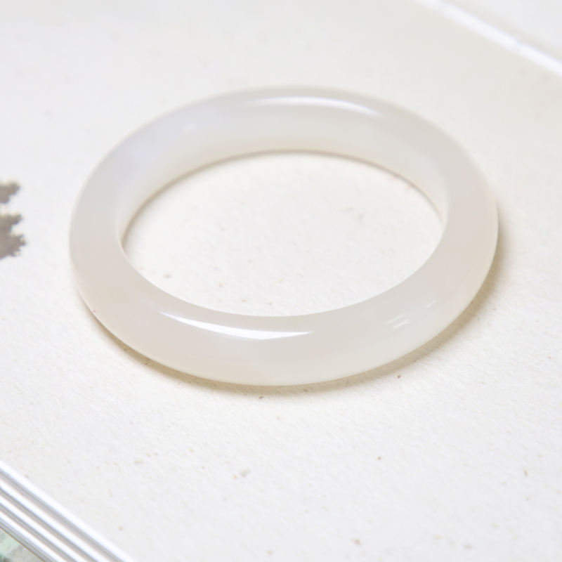 珪宝54.7mm和田玉藕粉宽条手镯女款天然玉石镯子带证书送女友1542