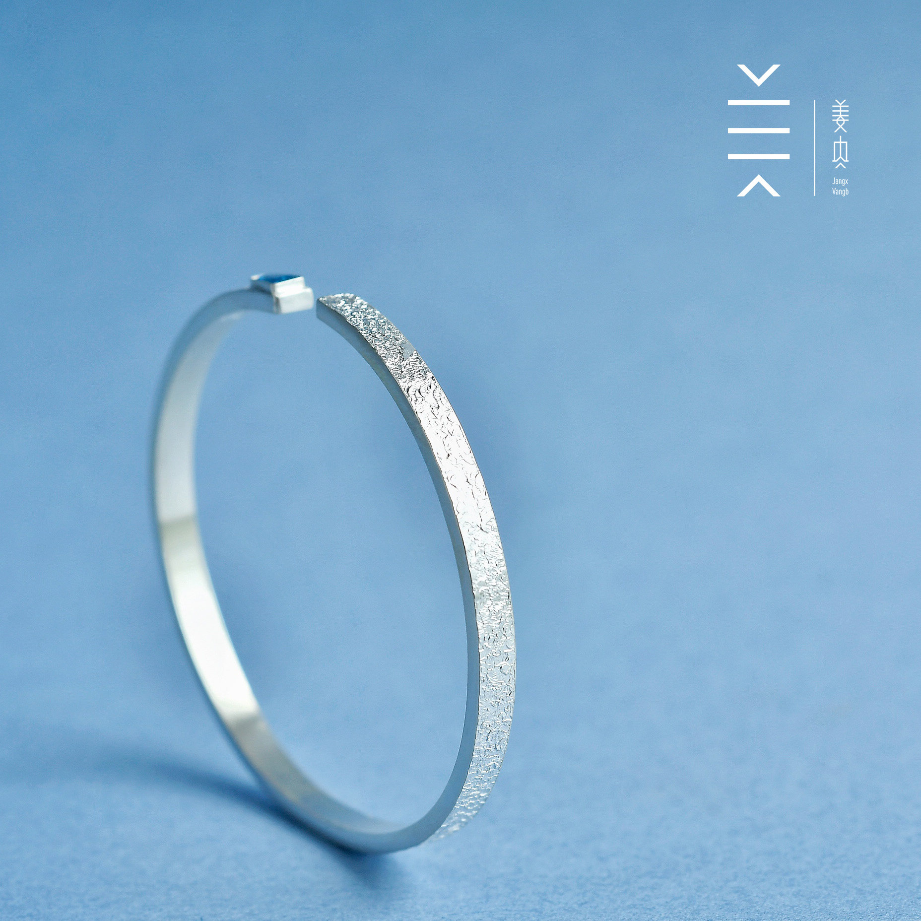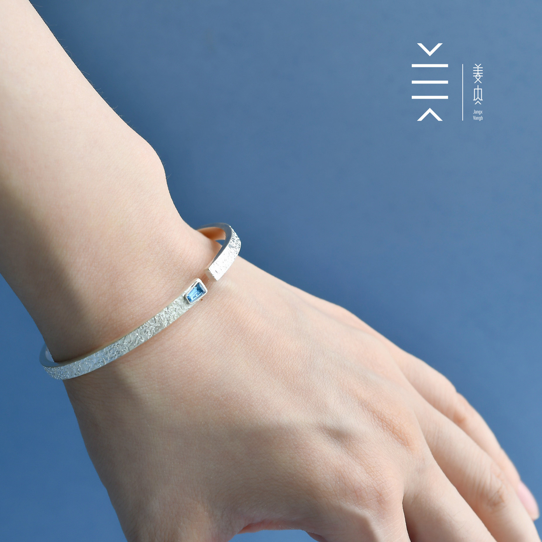 凝蓝丨手镯 姜央原创 镶嵌蓝色宝石 錾刻工艺 精致百搭