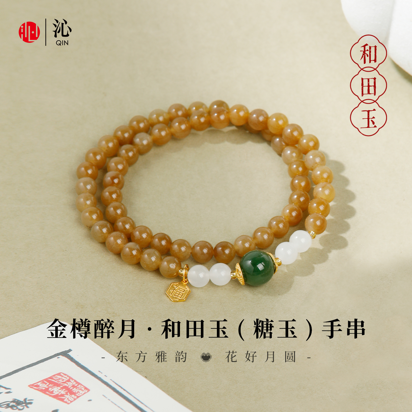 天然和田玉手串糖玉女款双圈手链好运正品男女生日礼物