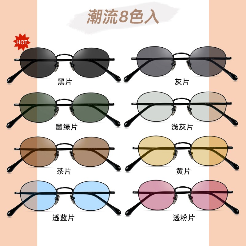 2024新款复古迷你小椭圆墨镜女级感防紫外线纯钛偏光镜开车眼镜