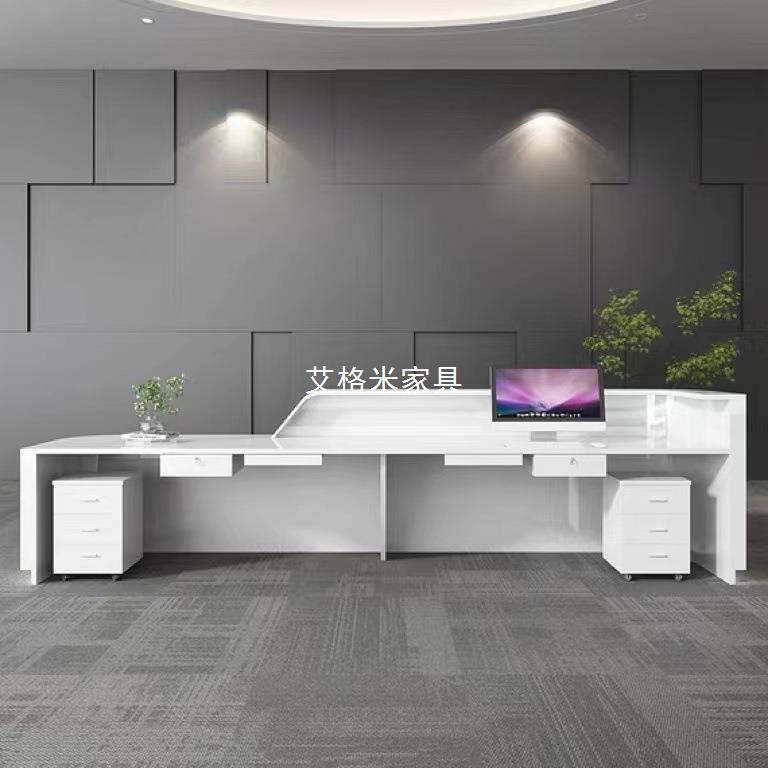 白色烤漆简约吧台收银台转角店铺柜台服务台公司前台办公桌接待台