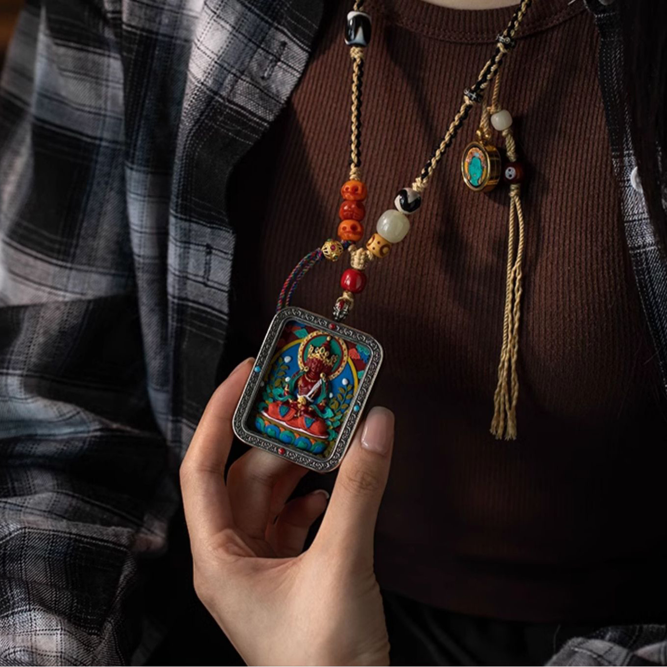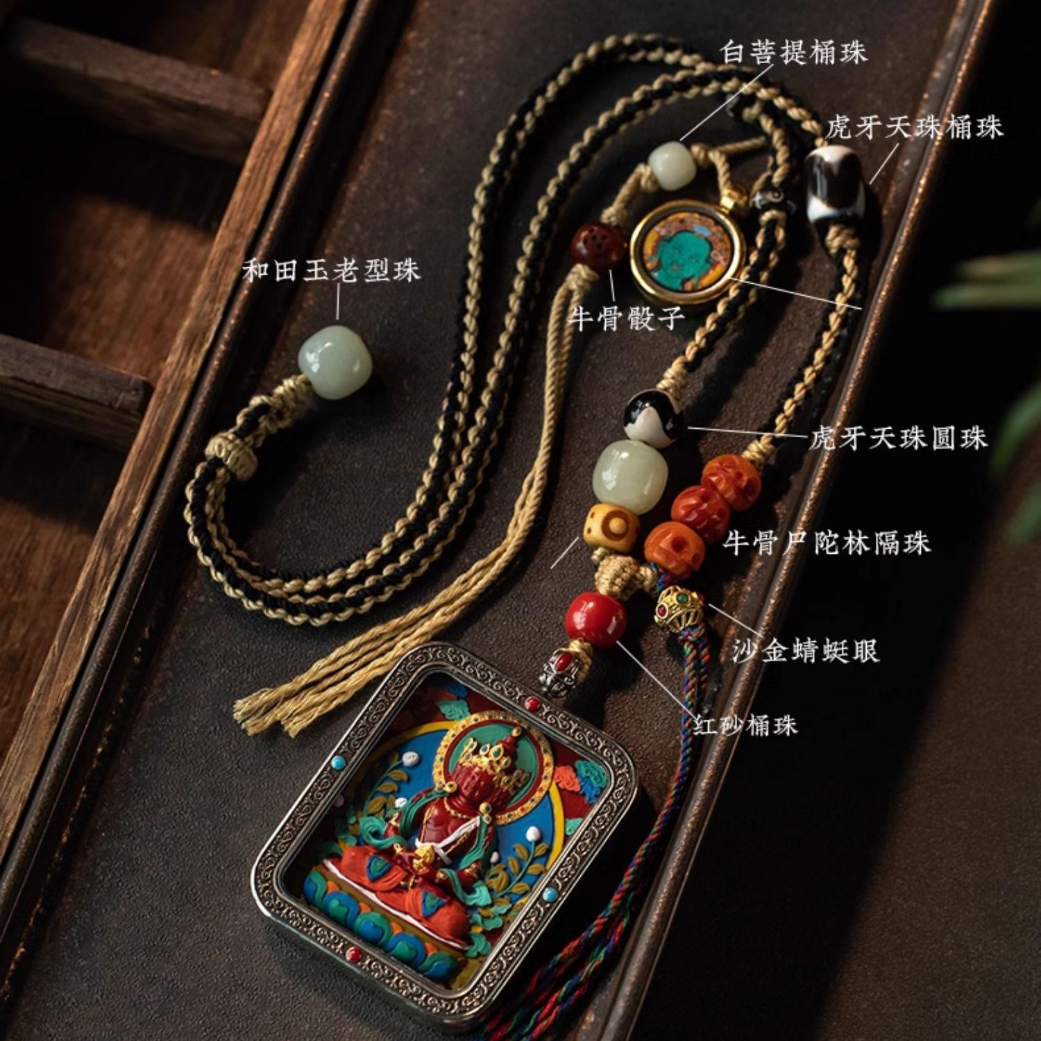 五台山朱砂菩萨藏式彩绘生肖本命佛唐卡吊坠项链八大守护神佛牌