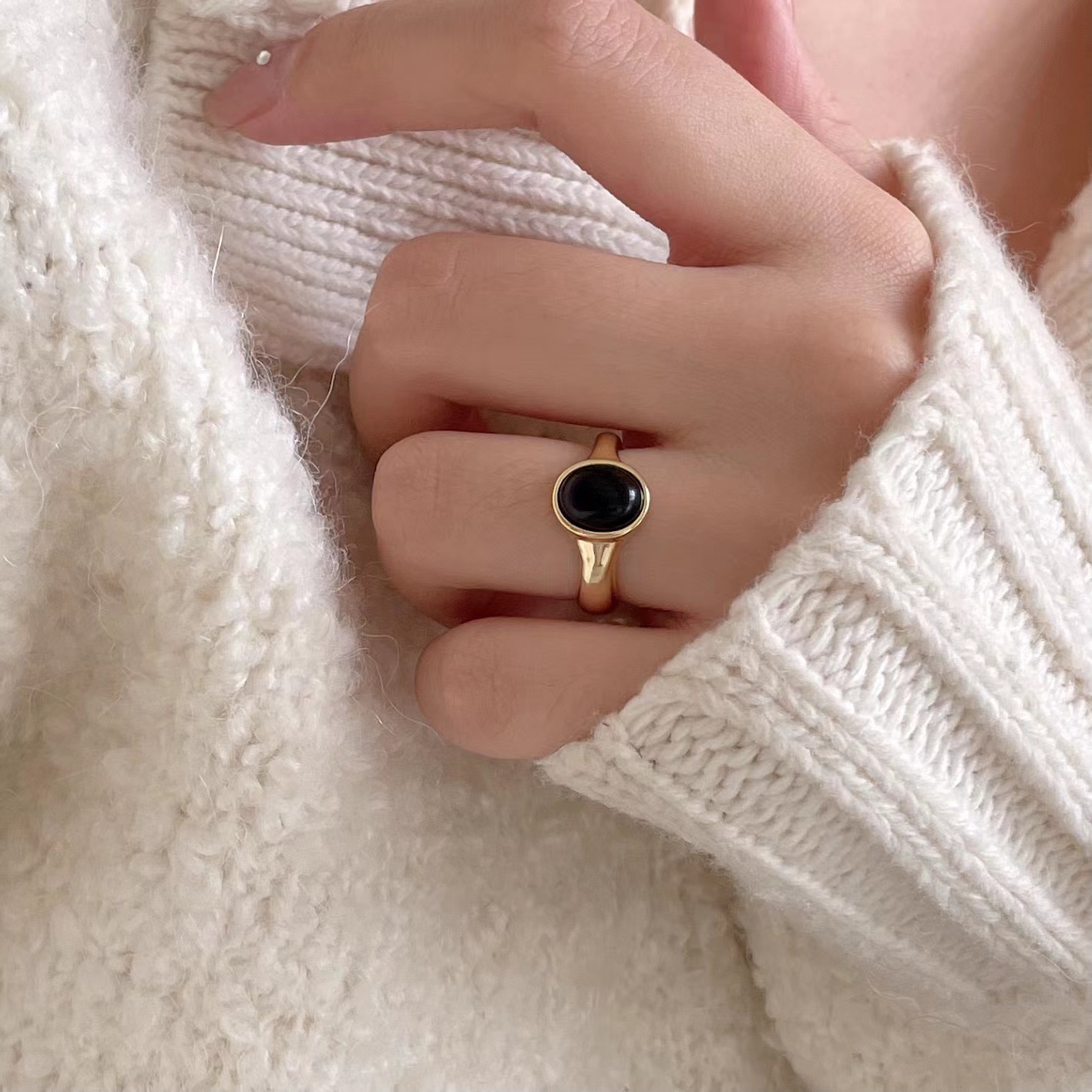 黑玛瑙戒指纯银开口可调节轻奢冷淡风个性回流小众设计高级感饰品