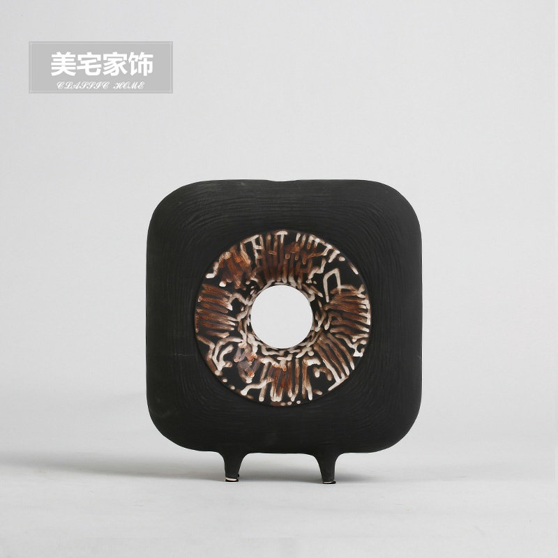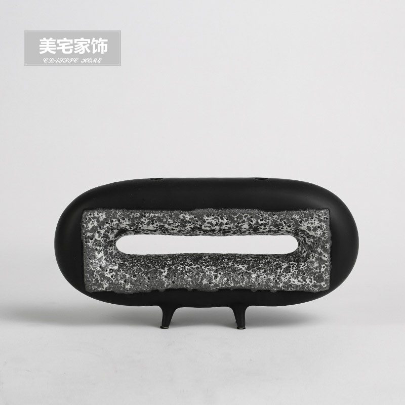 中式简约黑白几何插花花器客厅电视柜样板间创意陶瓷摆件家居饰品