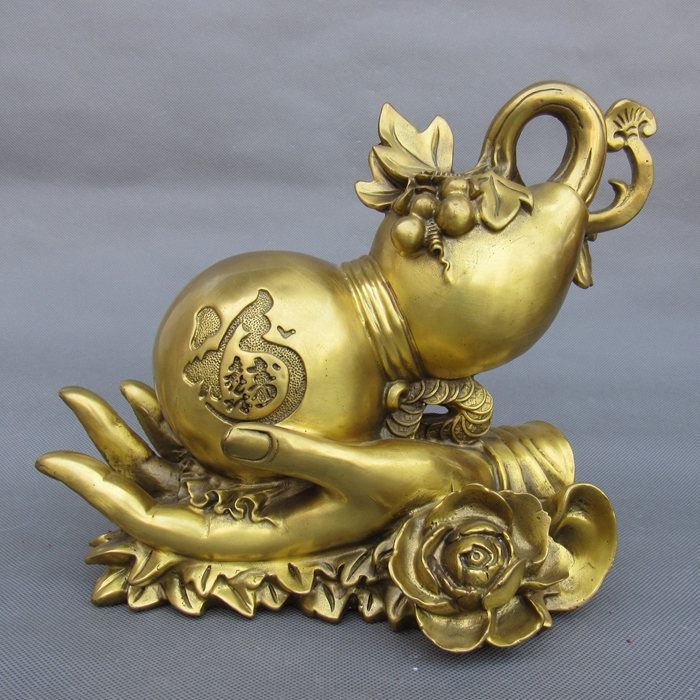 铜佛手葫芦摆件福字葫芦佛手福禄家居招财睡葫芦中式桌面工艺品