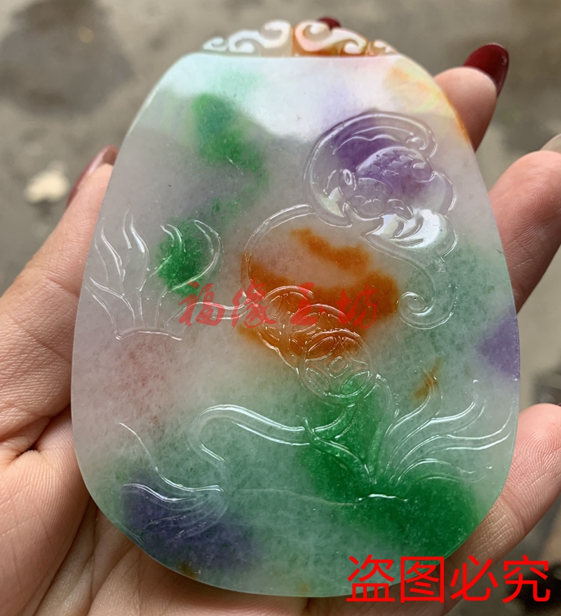 缅甸干青翡翠冰糯冰种飘绿色春彩龙腾虎跃龙虎牌子吊坠霸气