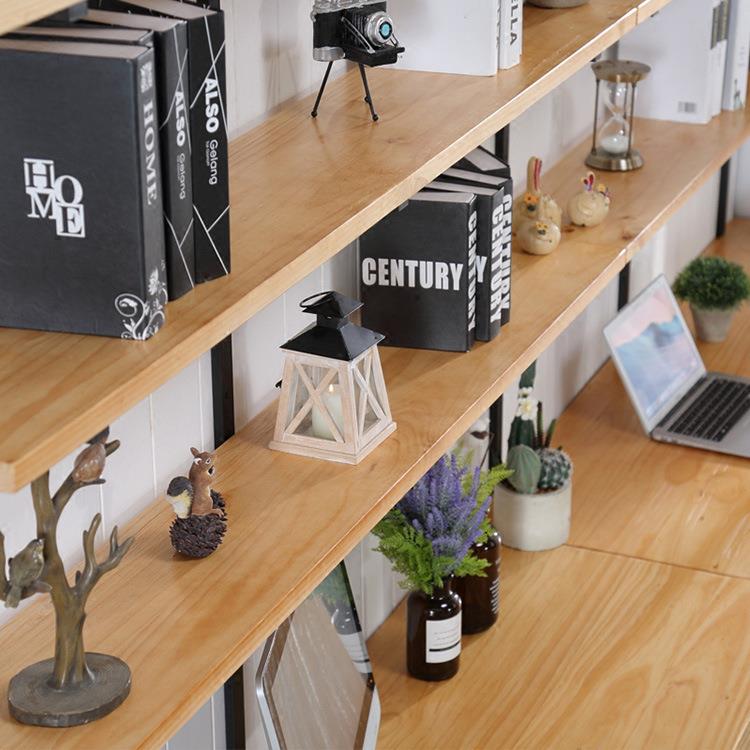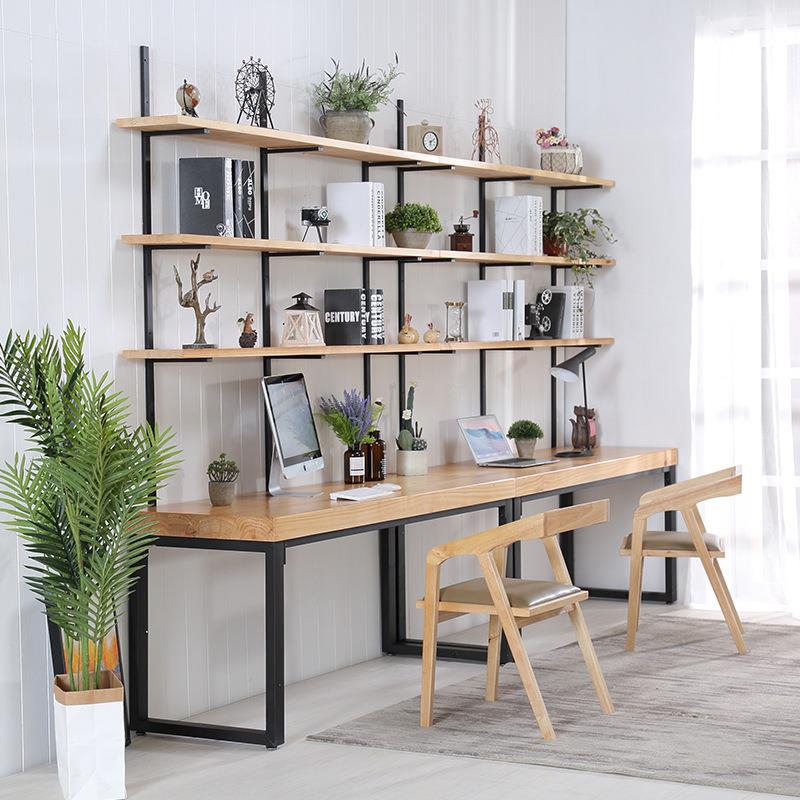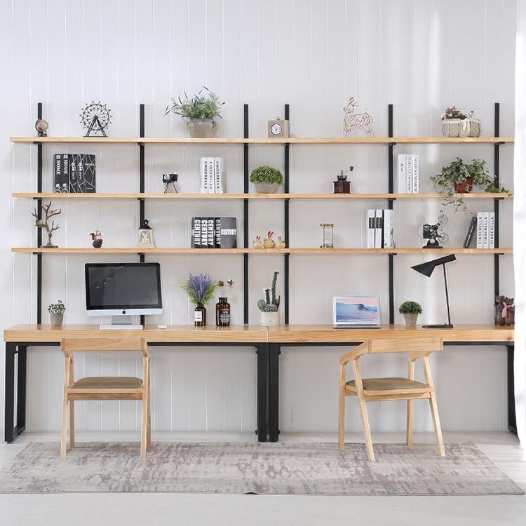 严选简约实木靠墙书桌架一体创意办公桌配套置物架书房铁艺书桌子