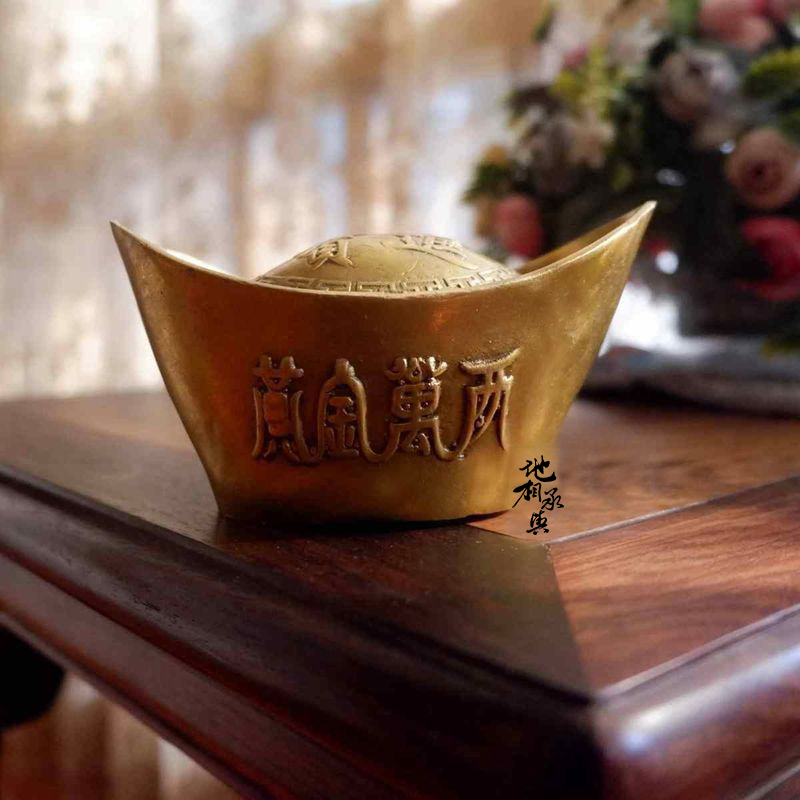 黄铜元宝摆件小号黄金万两进宝招财旺财元宝玄关家居店铺装饰品
