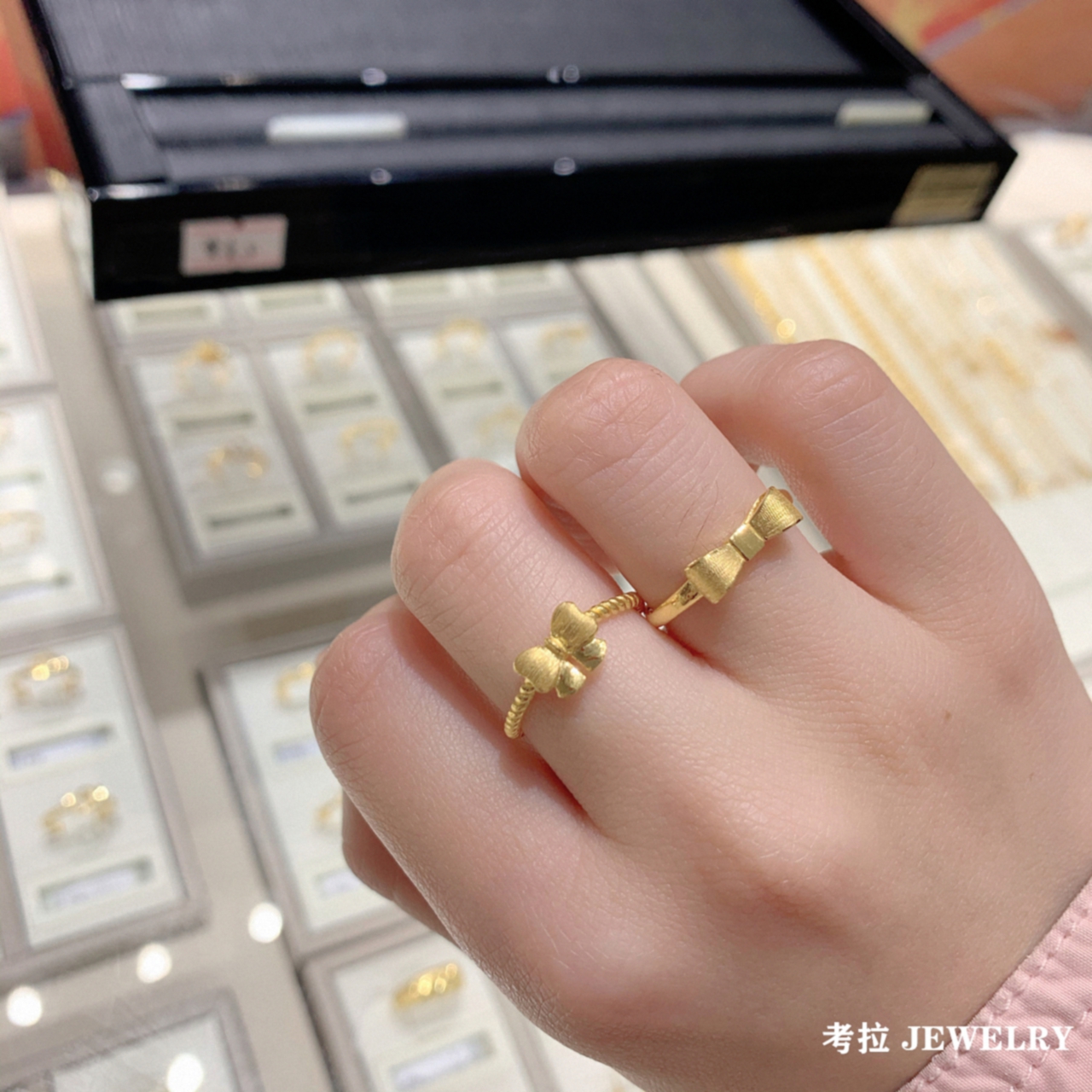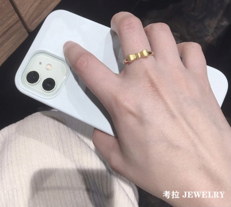 调太幅【拉丝】蝴蝶结戒指纯银镀18K黄金 女轻奢蝴蝶丝带指环百搭