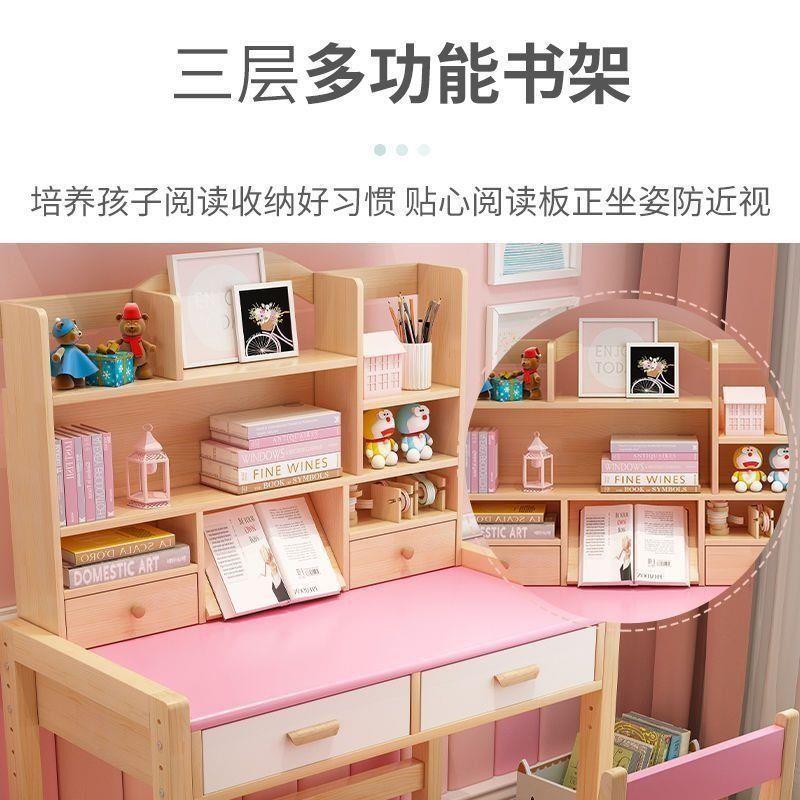儿童学习桌小学生一体可升降真实木书桌写字小孩书桌面上桌椅组