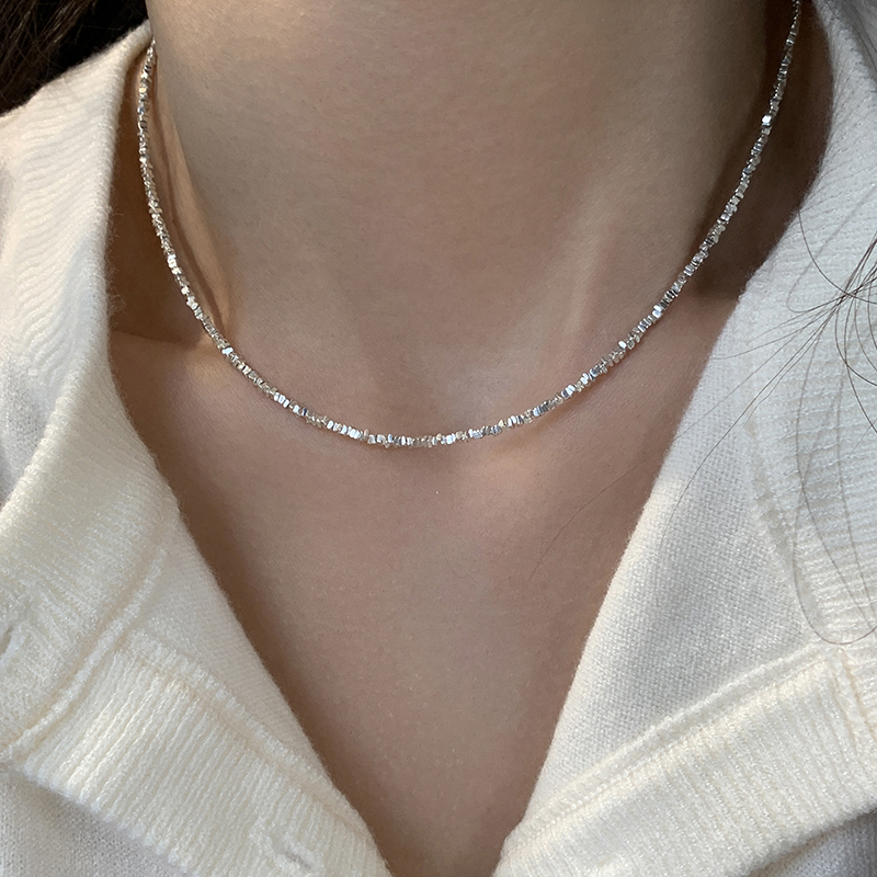 【迷度】通体925纯银闪耀碎银子项链锁骨链素链女颈链轻奢小众潮
