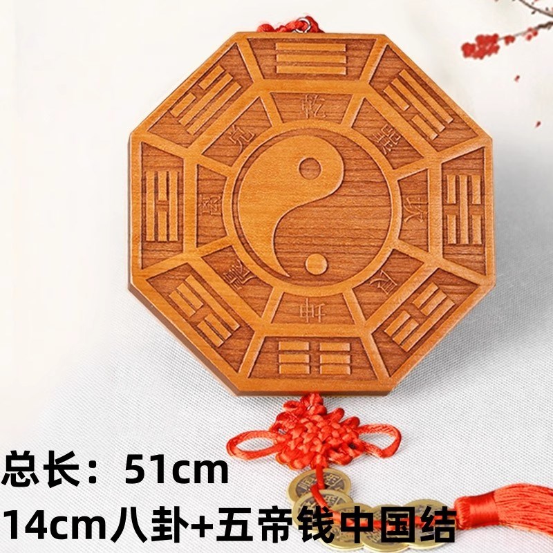 桃木五行八卦福挂件正品门口家用木雕八卦镜符九宫太极阴阳门对门