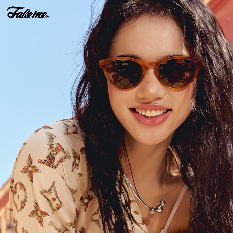 Fakeme 限定板材猫眼太阳镜女防紫外线墨镜海边旅游度假 Kin