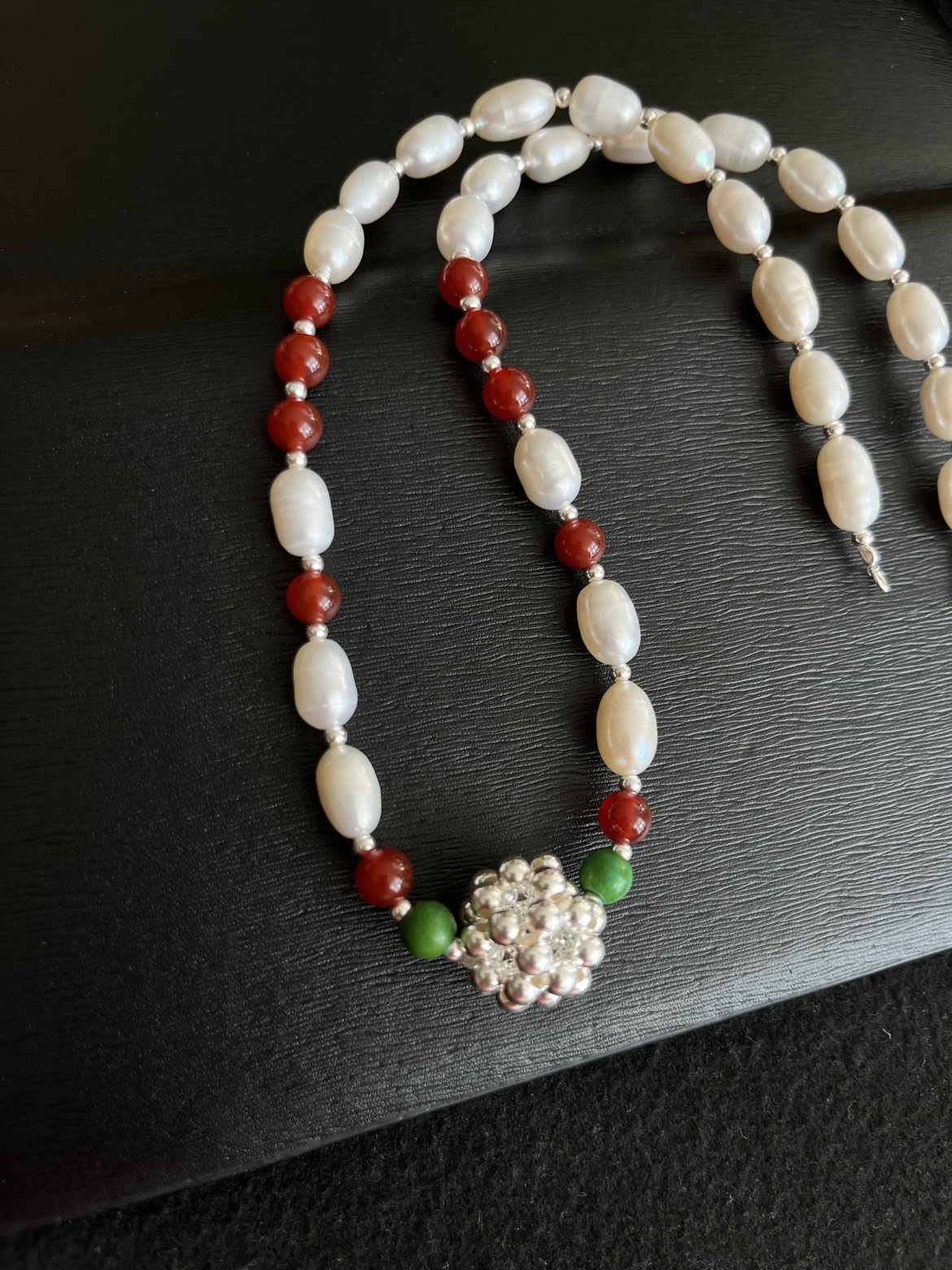 925纯银异形淡水珍珠红玛瑙手工银球珍珠项链蒙古银饰女蒙族项链