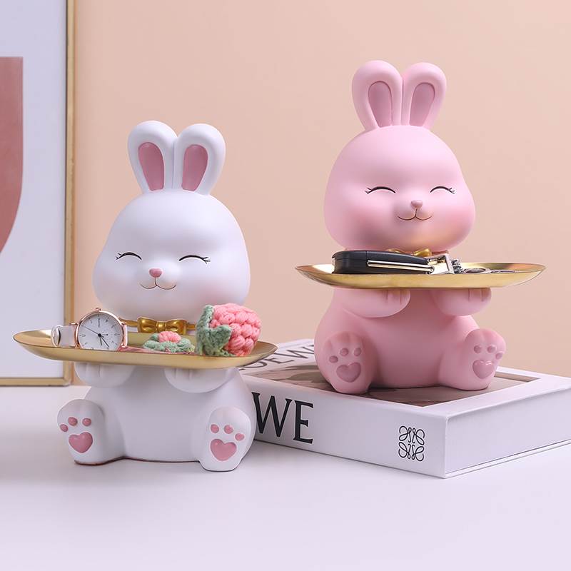 入户门放钥匙收纳摆件入户玄关托盘进门口鞋柜置物架客厅家创兔子