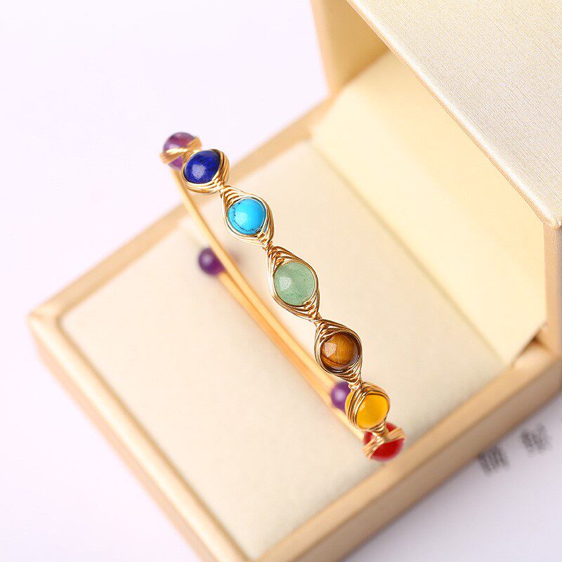 七色水晶瑜伽冥想手镯跨进电商直播爆款货源14k包金绕丝水晶手镯