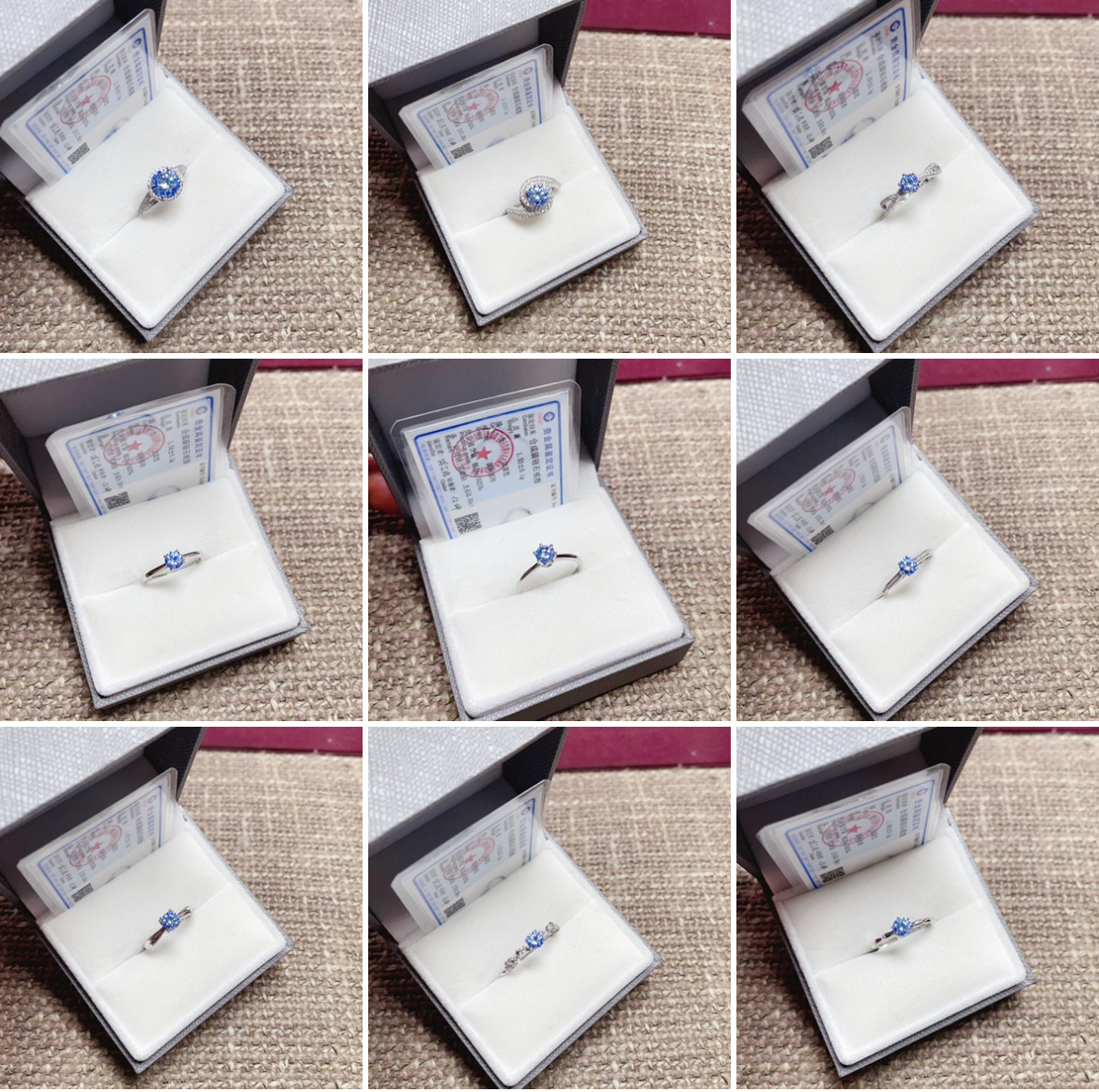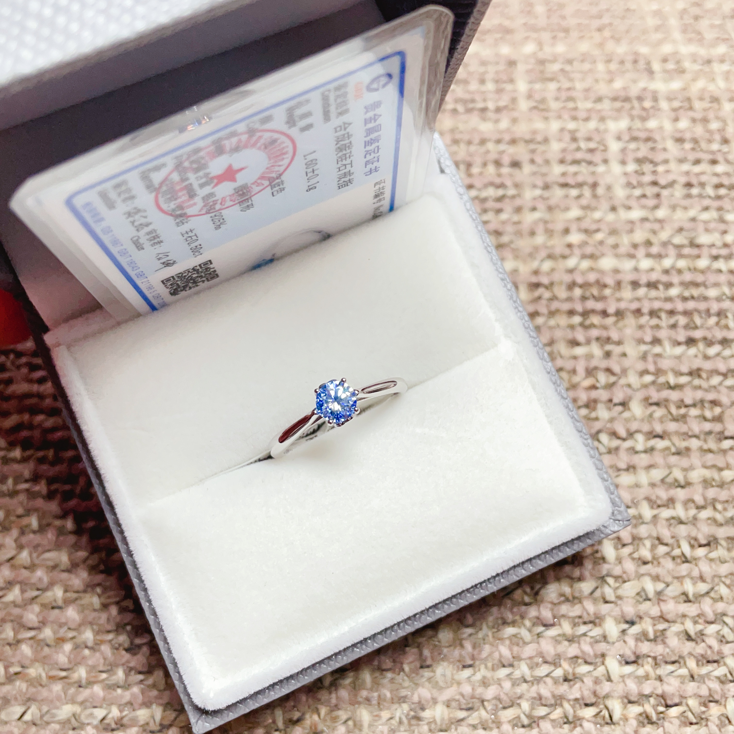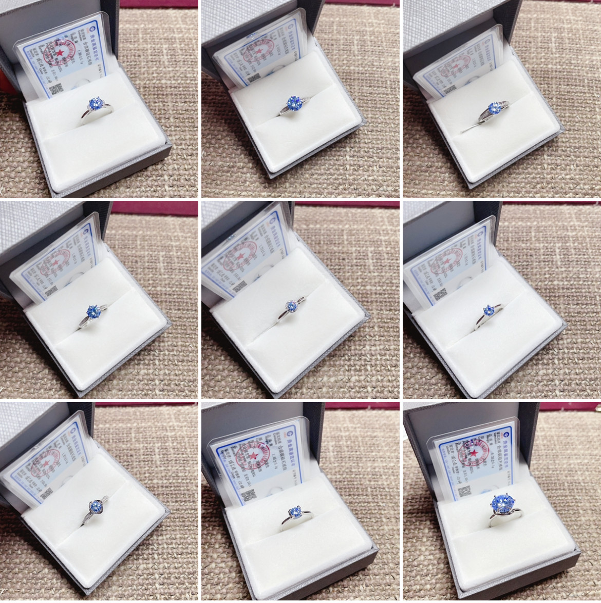 闪亮银饰通体S925纯银宝蓝色莫桑钻戒指女时尚百搭气质优雅潮