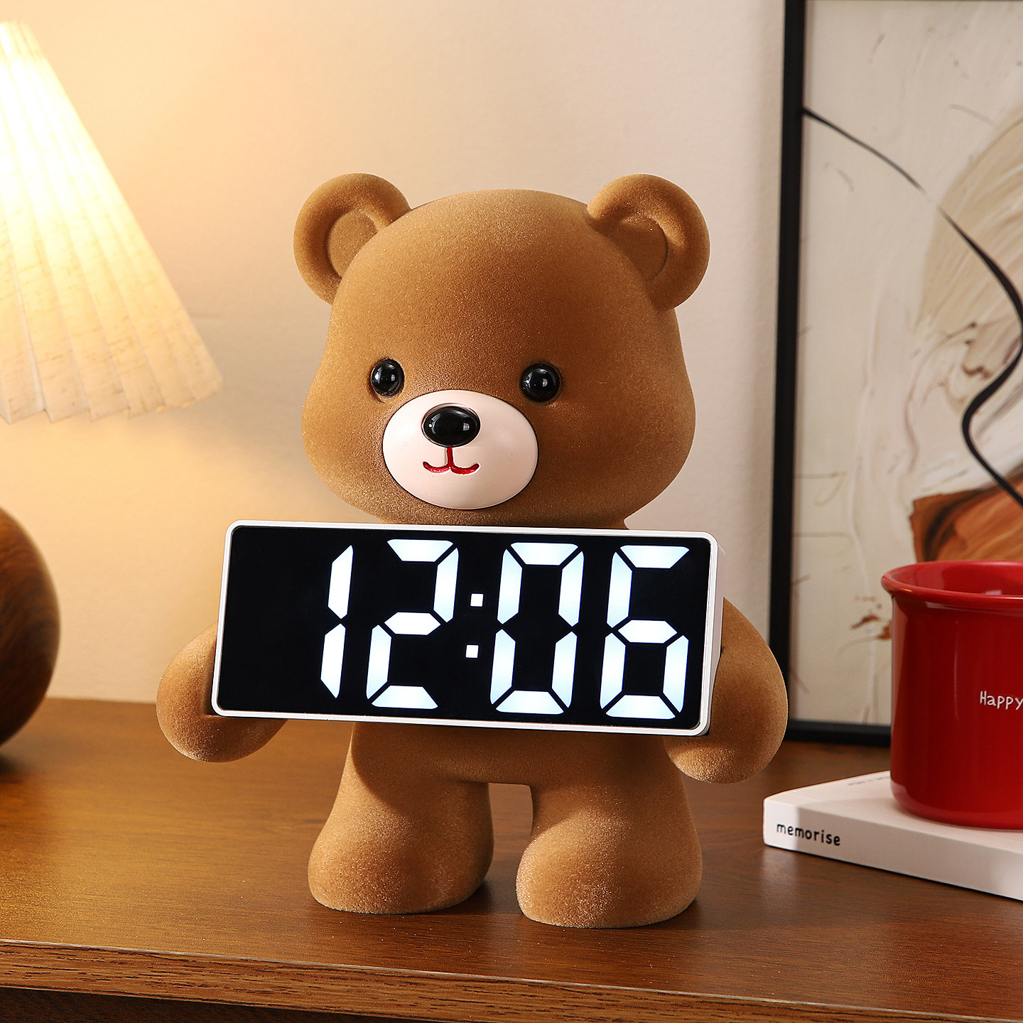 轻奢小熊时钟摆件客厅家居玄关电视柜意式极简小众高级感软装饰品