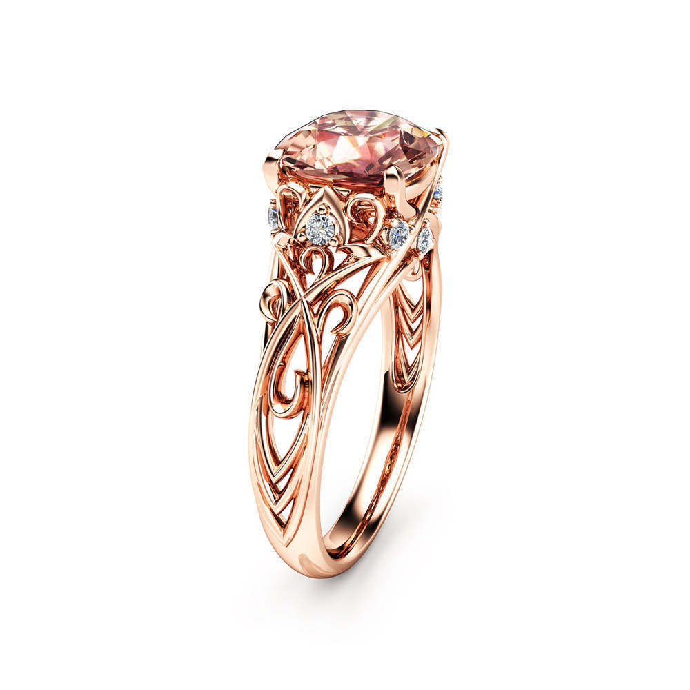 Youngwish热卖新款镀14k玫瑰金通花戒指 彩宝石托帕石香槟色手饰