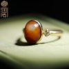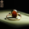 【姑苏润石堂】在售3.6克天然新疆和田玉籽料红沁皮镶金戒指