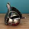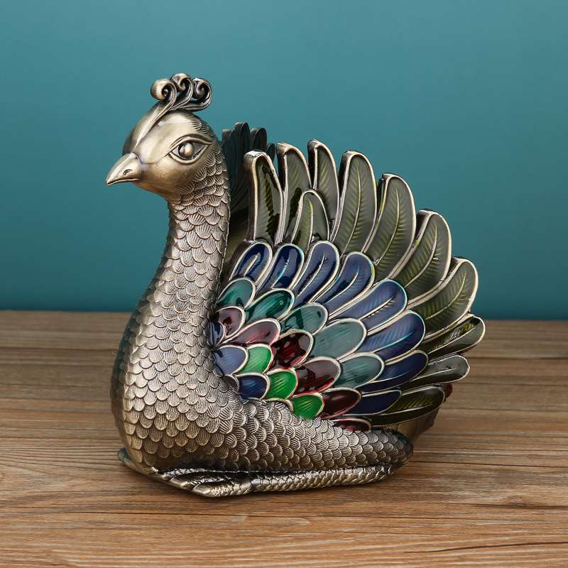 欧式家用烟灰缸创意时尚复古轻奢烟缸金属防飞灰烟灰带盖孔雀摆件