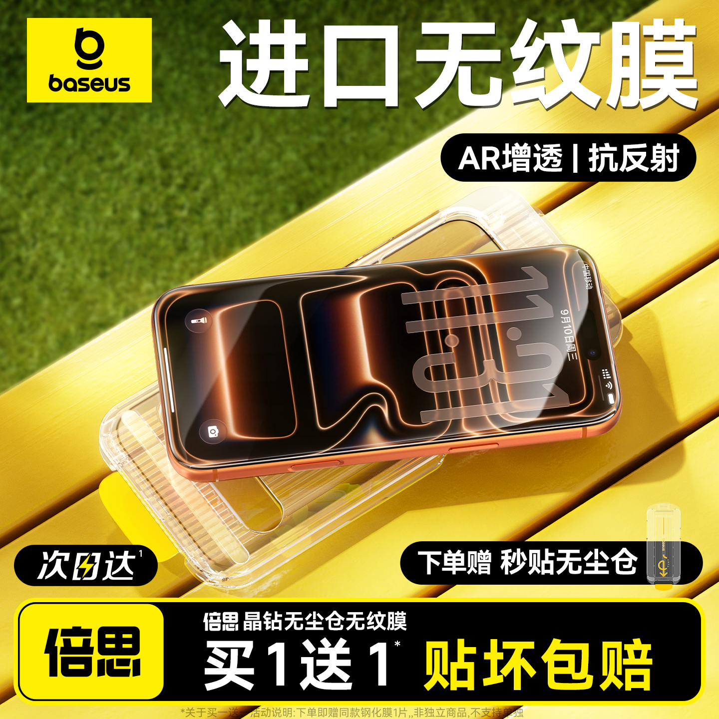 倍思无纹膜适用苹果iPhone17钢化膜AR抗反射16ProMax保护膜15Pro无尘仓14手机贴膜13全屏覆盖12防摔11高清Air