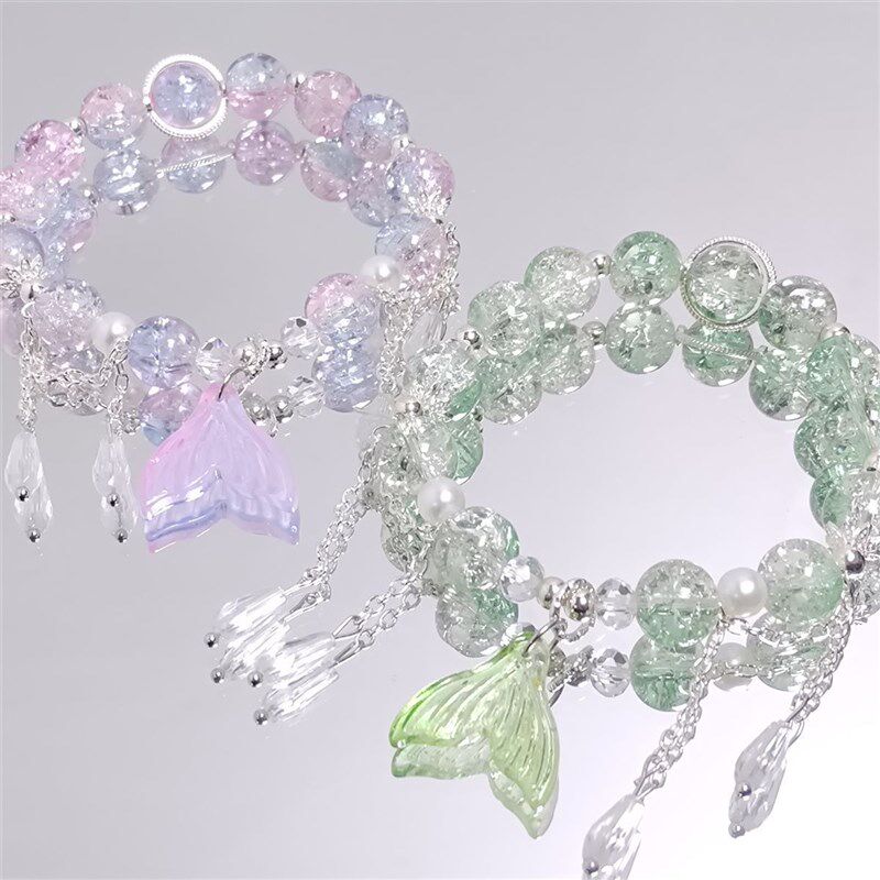 新款人鱼尾碎冰手链女ins潮diy手工串珠手饰轻奢百搭学生闺蜜手串