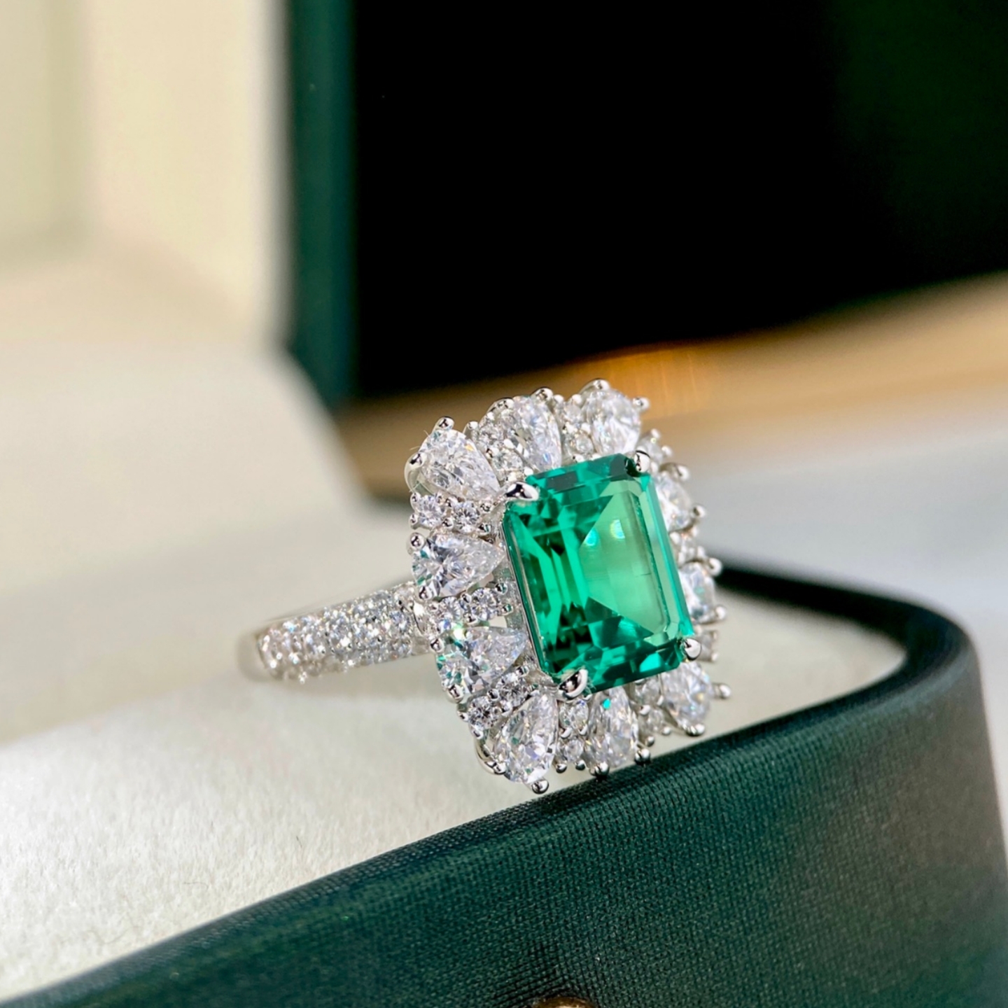 哥伦比亚色vvg锦簇围镶2.2克拉实验室培育祖母绿钻戒指女可净棉裂
