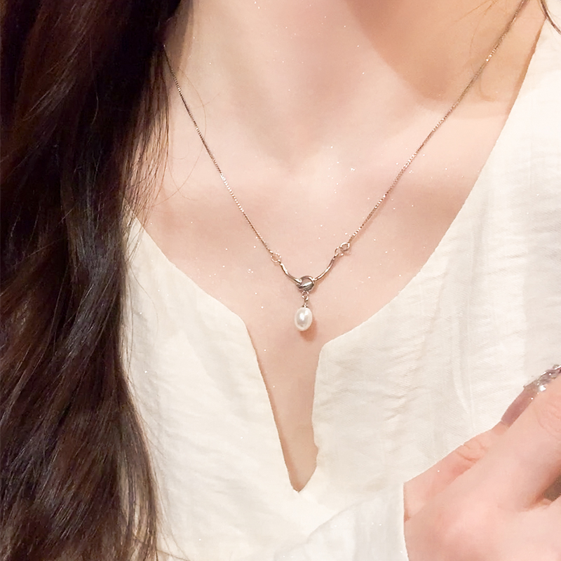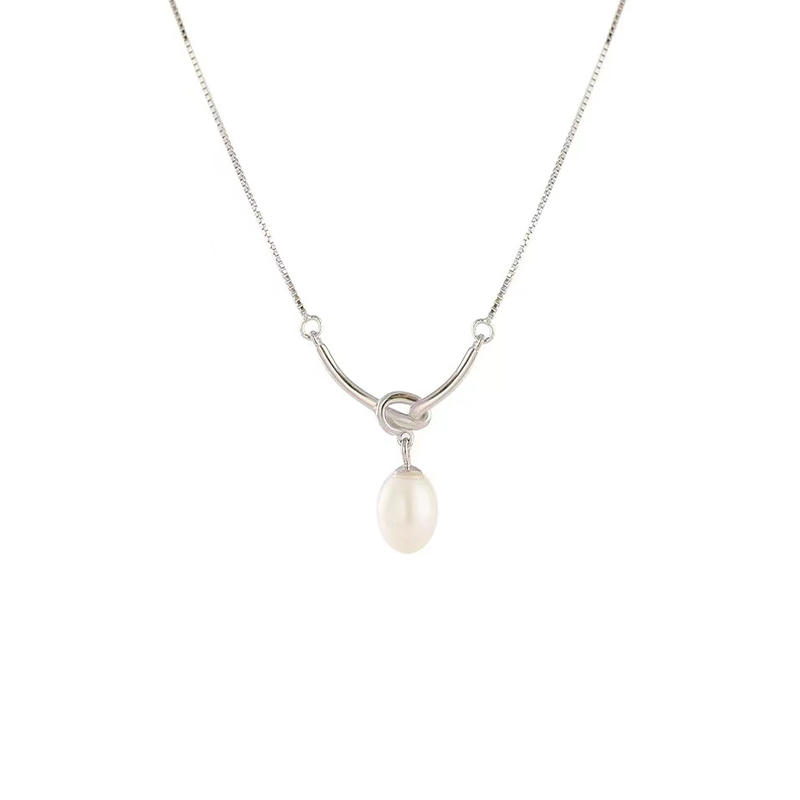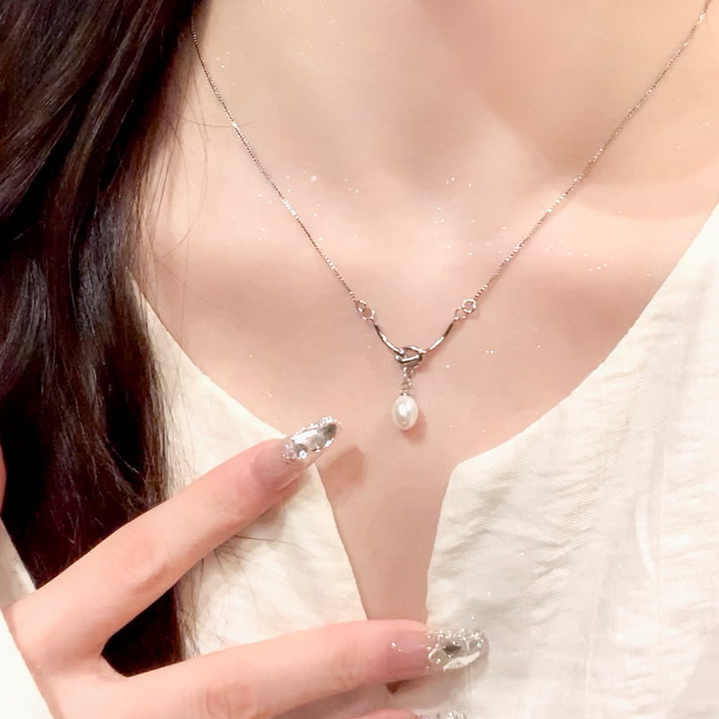 铜镀银项链女款绳结珍珠项链轻奢小众锁骨链女高级感毛衣链配饰品