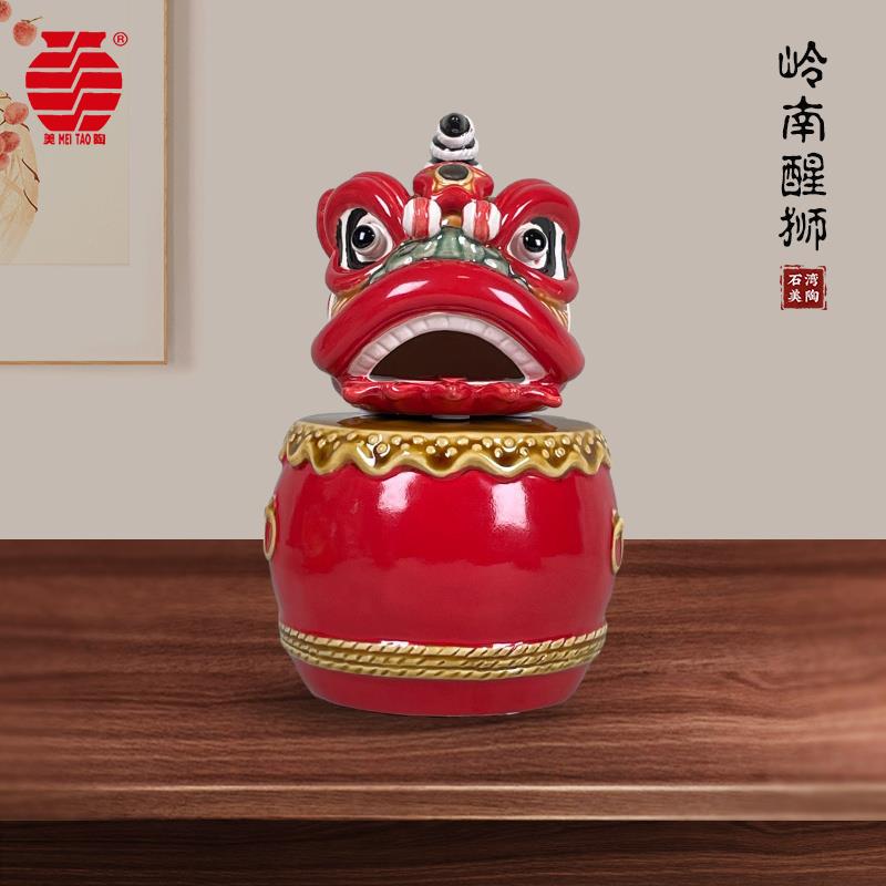 国潮醒狮舞狮中式小摆件玄关博古柜电视柜桌面陶瓷狮子头装饰摆设
