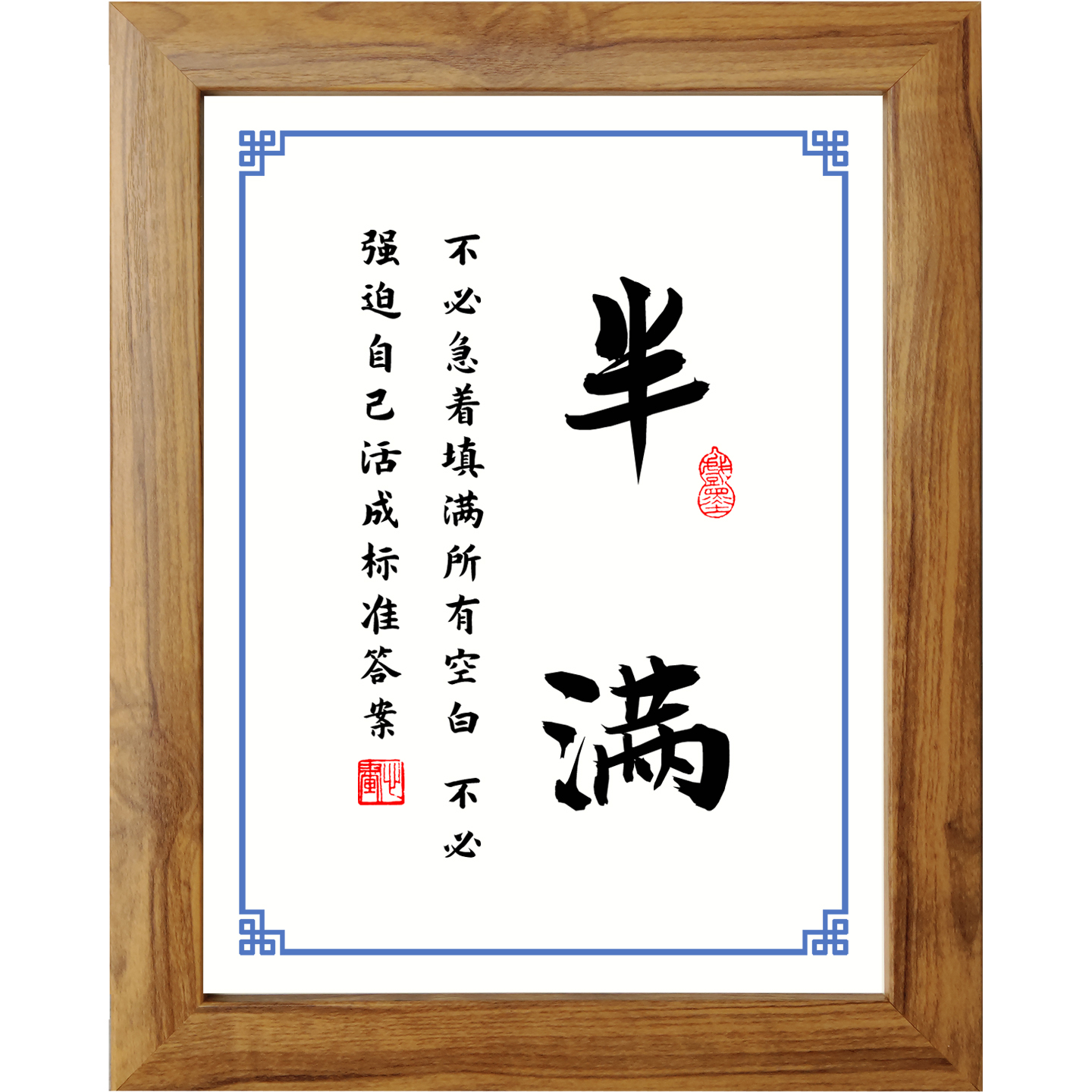 半满不必强迫自己活成标准答案书法励志摆件书桌相框字画摆台挂画