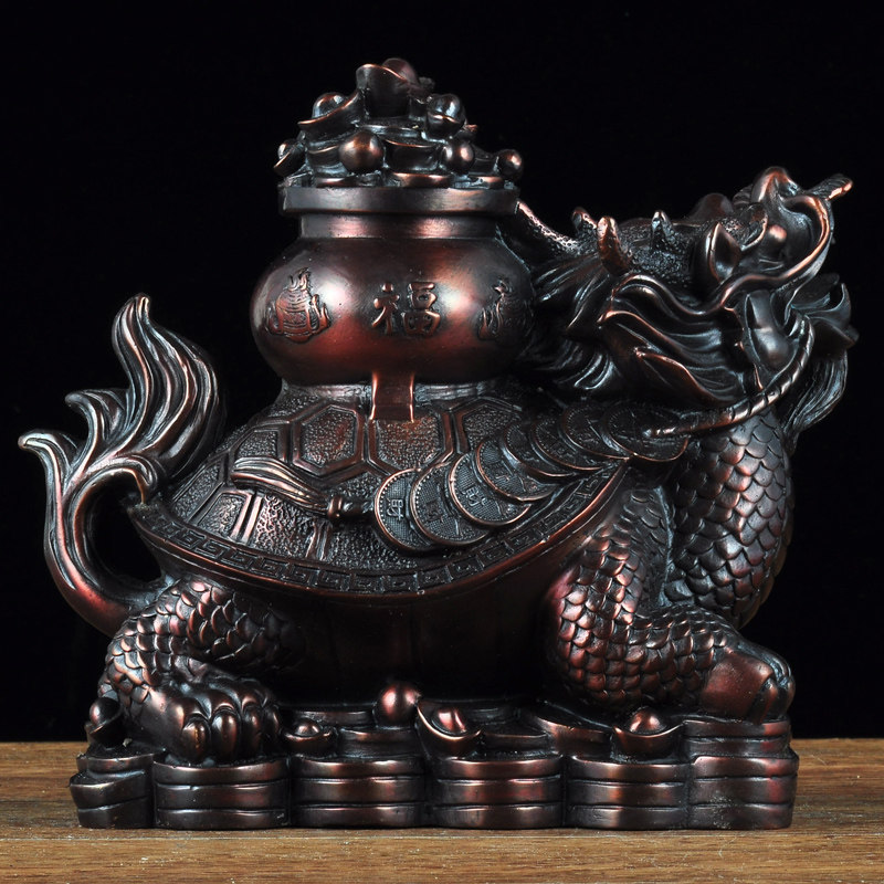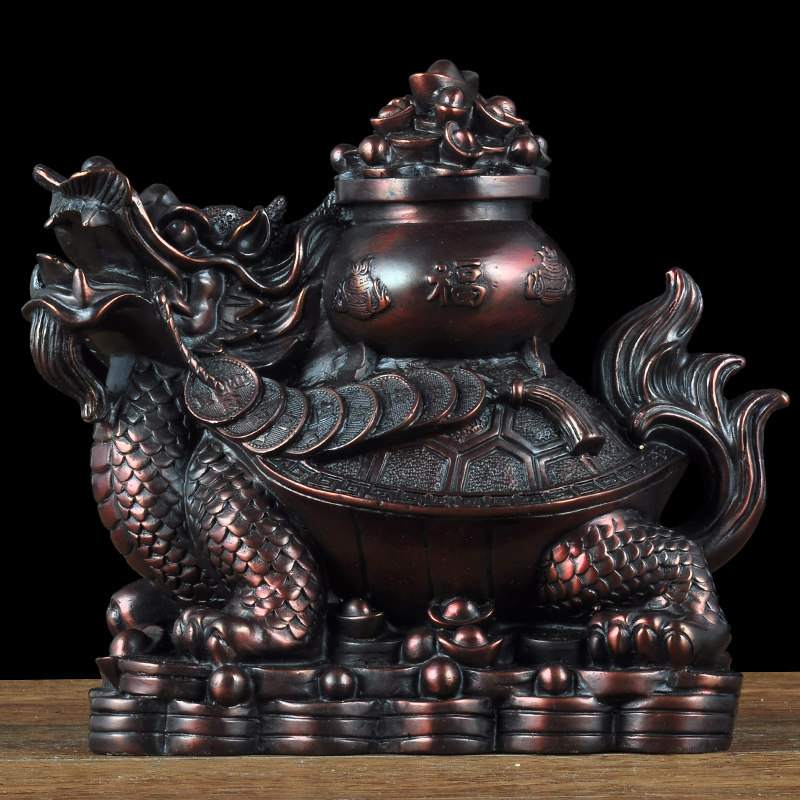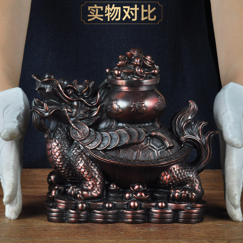 彩铜龙龟摆件中式聚宝盆招财家居客厅玄关装饰品商务乔迁新居礼品