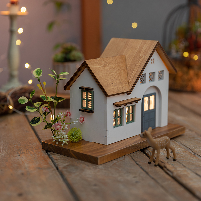 阿楹 成品木屋模型微景观小夜灯摆件仿真别墅儿童房子装饰玩具花
