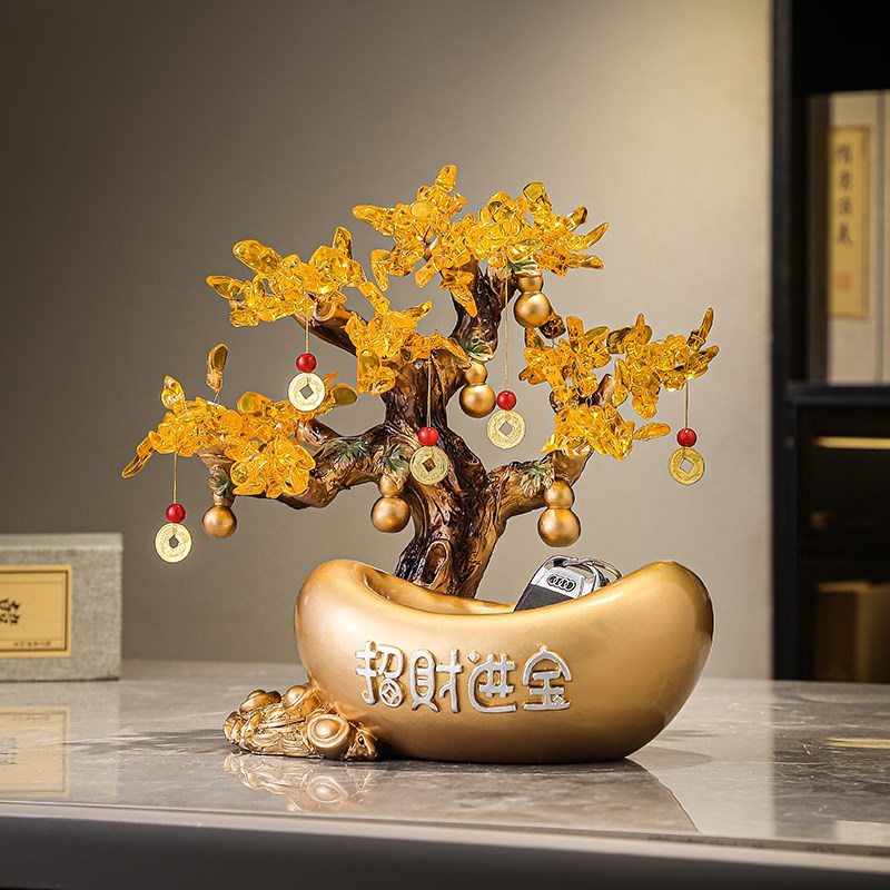入户玄关元宝钥匙收纳摆件客厅发财树H办公室桌面招财乔迁新居摆
