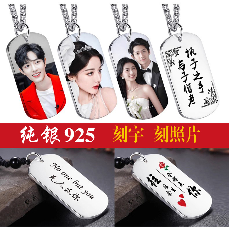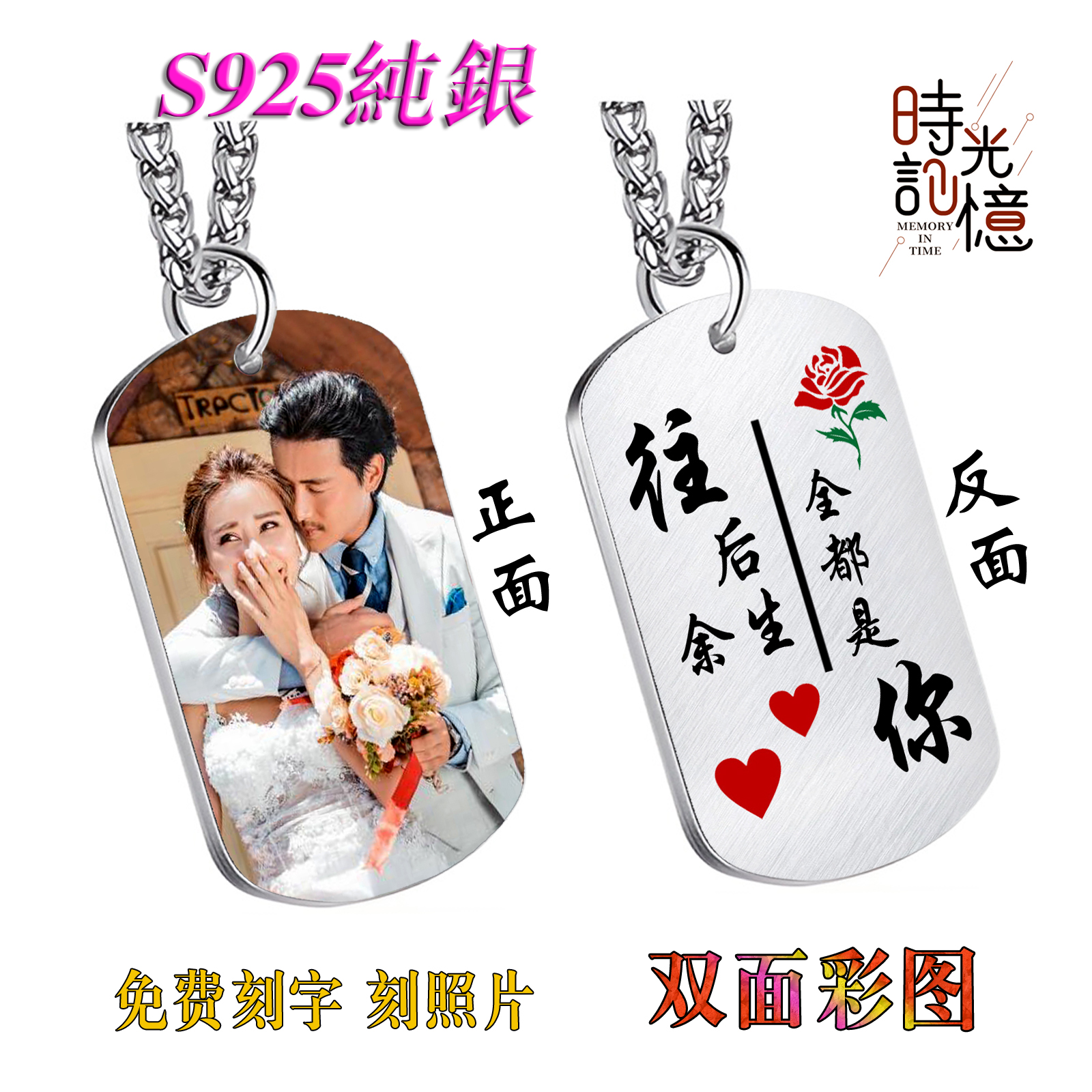银牌吊坠纯银项链来图订制双面彩色照片刻字刻图男女创意礼物挂件