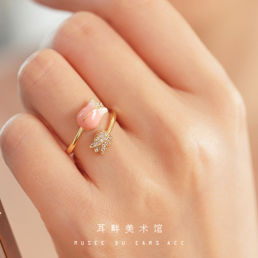 A郁金香气质花朵戒指女小众设计开口可调节时尚个性2025新款爆款