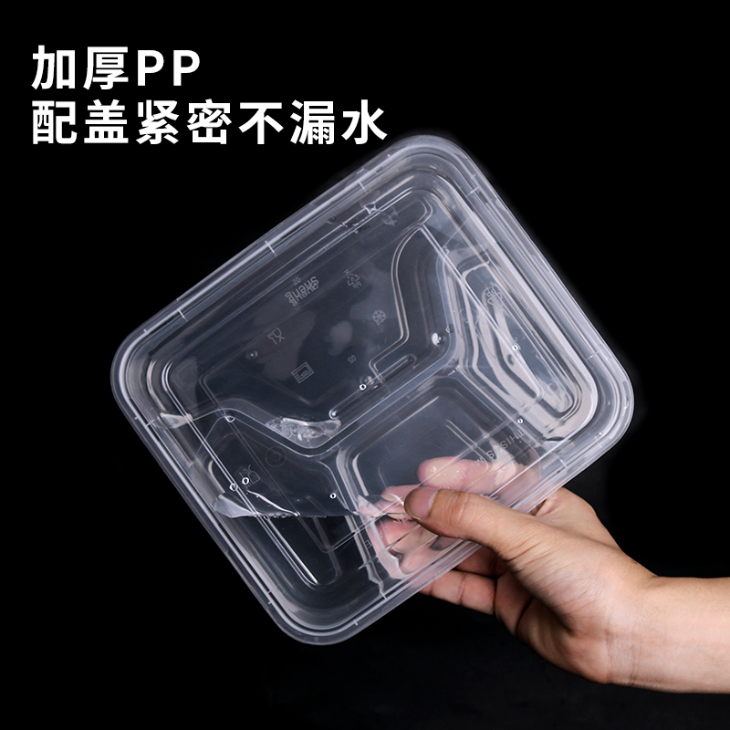 一次性分格打包盒长方形透明塑料三格加厚快餐盒外卖四格饭盒黑色
