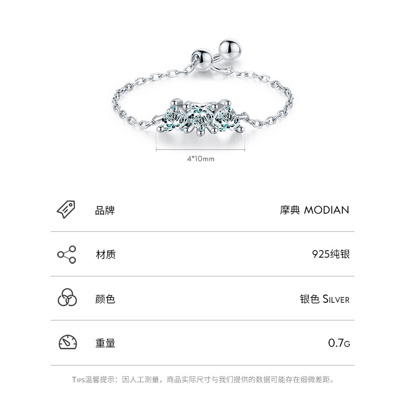 MODIAN纯银镶嵌锆石戒指女精致小巧时尚简约百搭ins风可调节指环