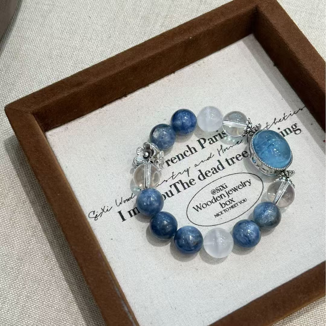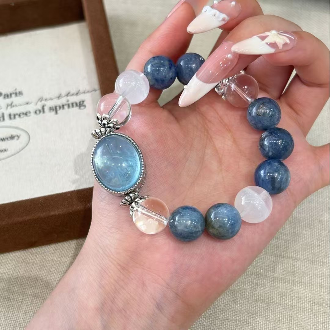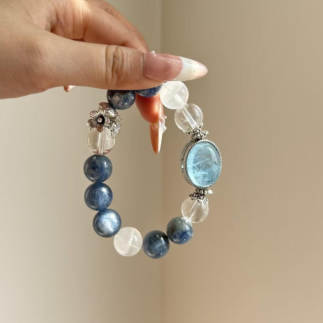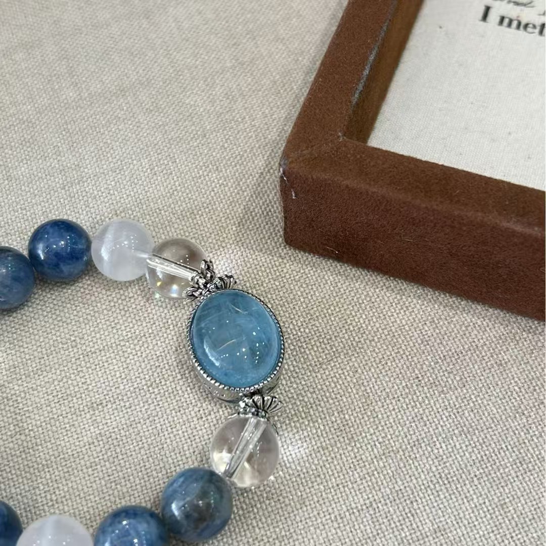天然海蓝宝蓝晶石手链女款单圈水晶手串饰品礼物女友闺蜜生日礼物