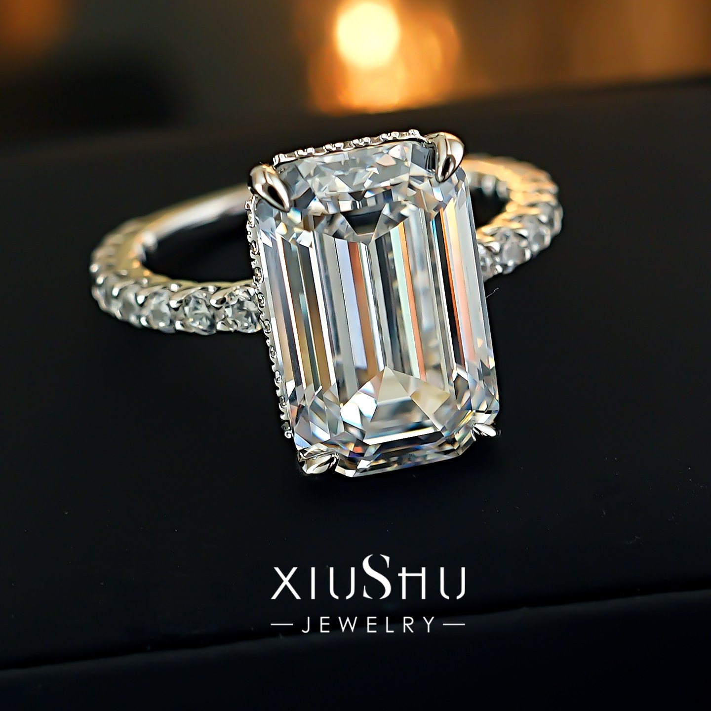 冰透大冰糖9克拉祖母绿切割925银戒指女白钻款简约大气富婆款食指