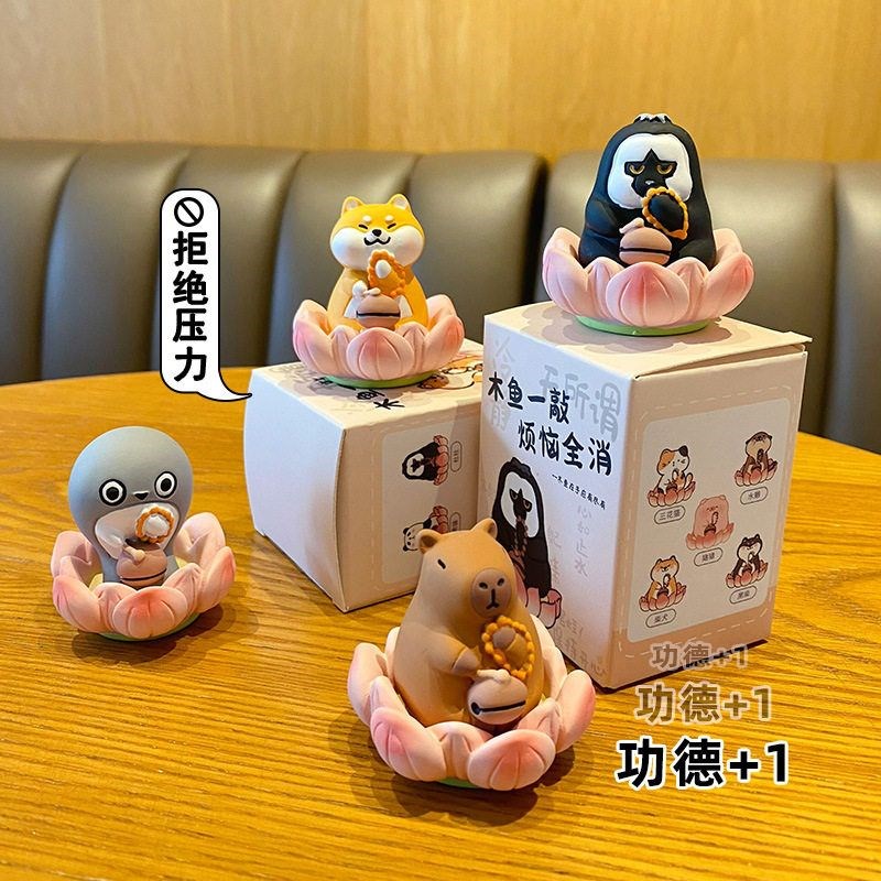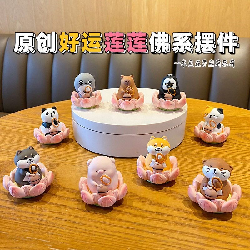 原创铜钱佛e系好运莲莲木鱼三花猫猪猪汽车居家装饰小摆件树脂公