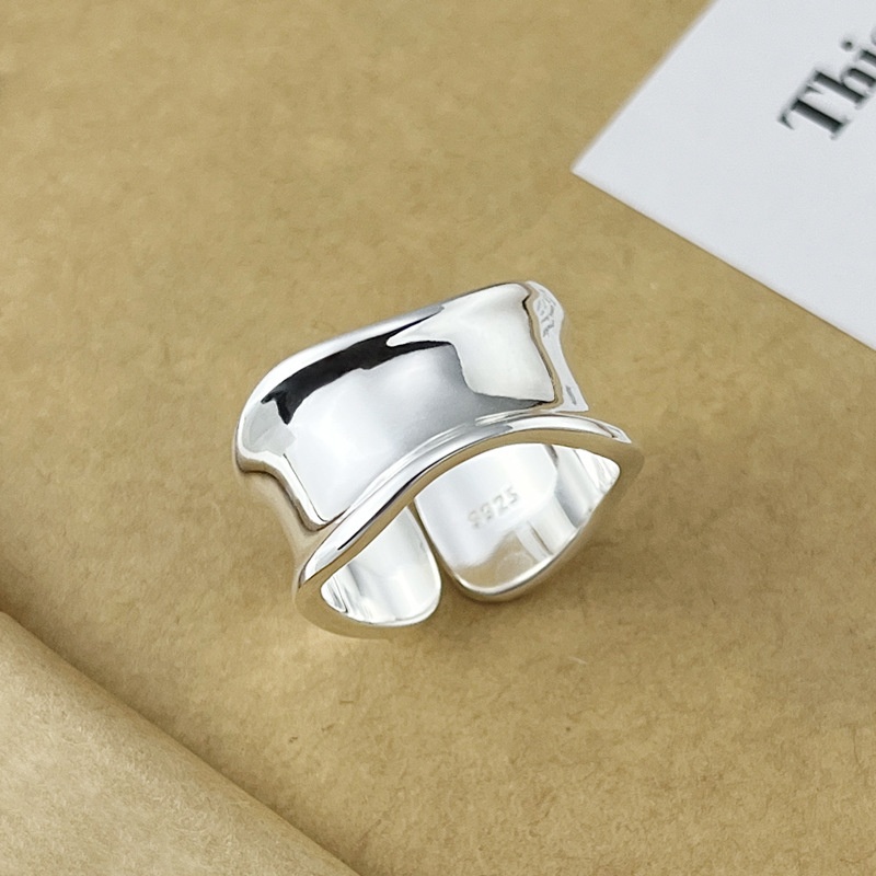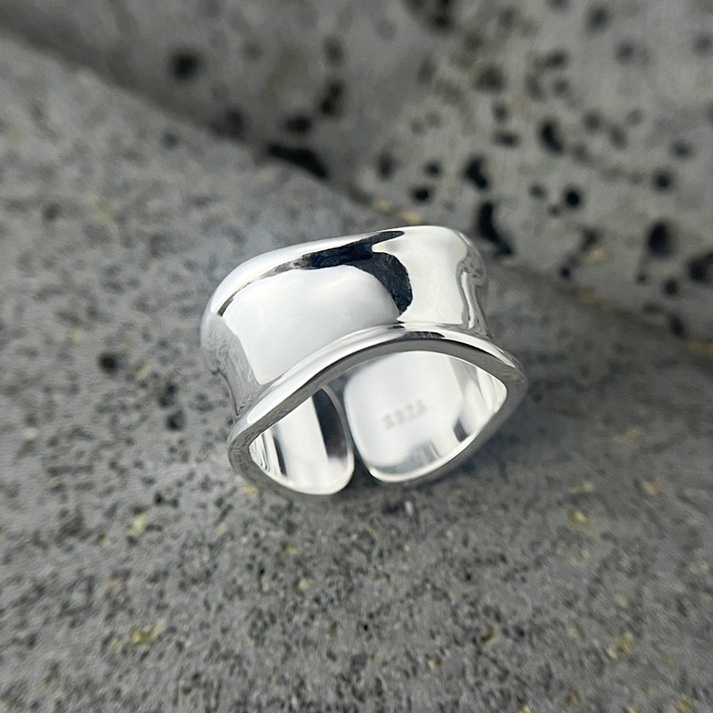 美汝仙 纯银不规则光面宽面戒指女简约气质港风个性开口指环轻奢