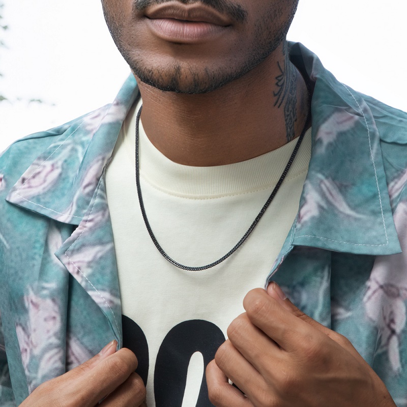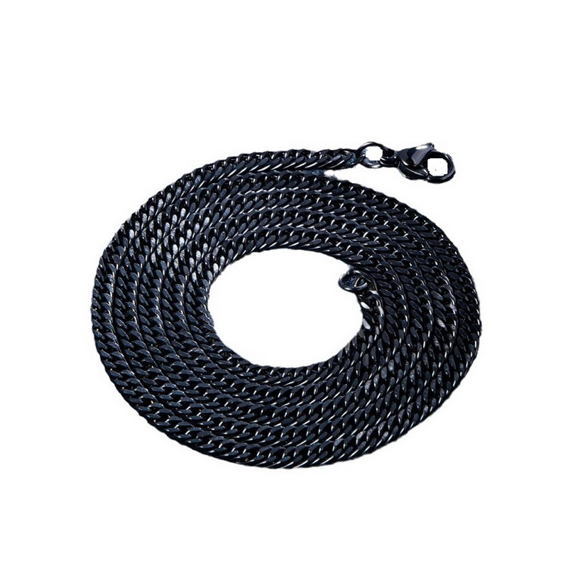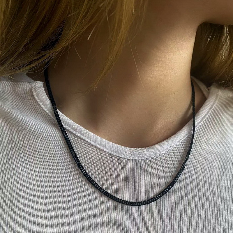 时尚简约黑色小古巴链钛钢锁骨项链ins小众设计男女情侣链素链子