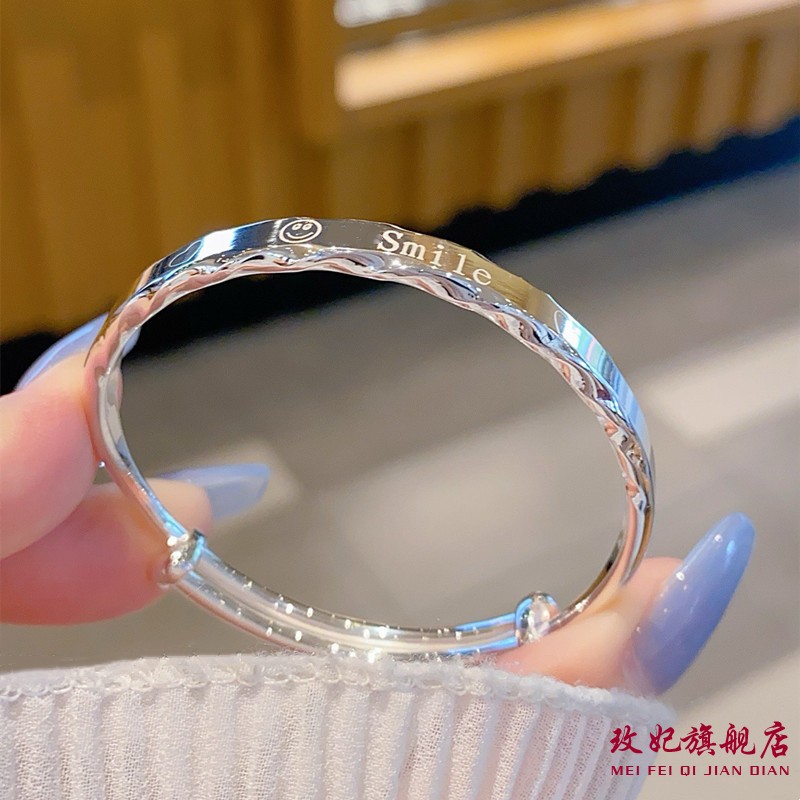 玫妃正生足银9999平安喜乐竹节福字笑脸纯银手镯女中大童学生款