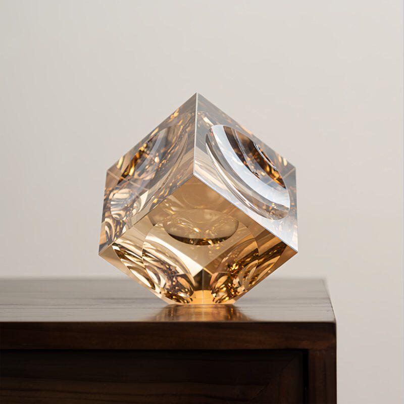 现代轻奢创意方块灰色方形水晶摆件样板房客厅茶几桌面咖色装饰品