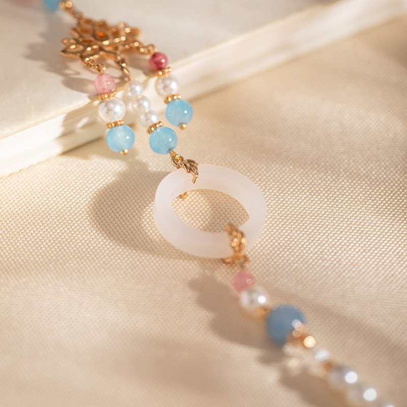 古风璎珞项链汉服马面裙配饰长流苏明制背云新中式国风旗袍蓝色