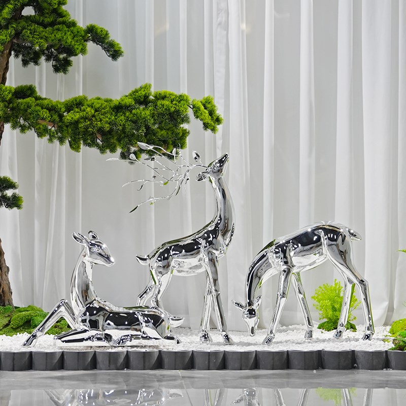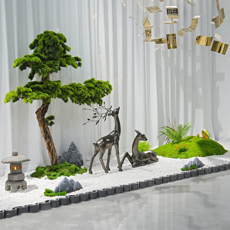 室内电镀鹿摆件造景酒店迎客松现代玄关J公司装饰品楼梯下景观布