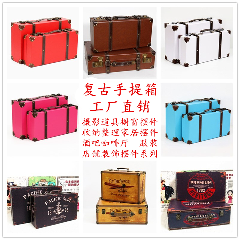 复古手提旅e行箱摆件道具箱摆设 创意家装饰品家居摆饰仿古皮箱