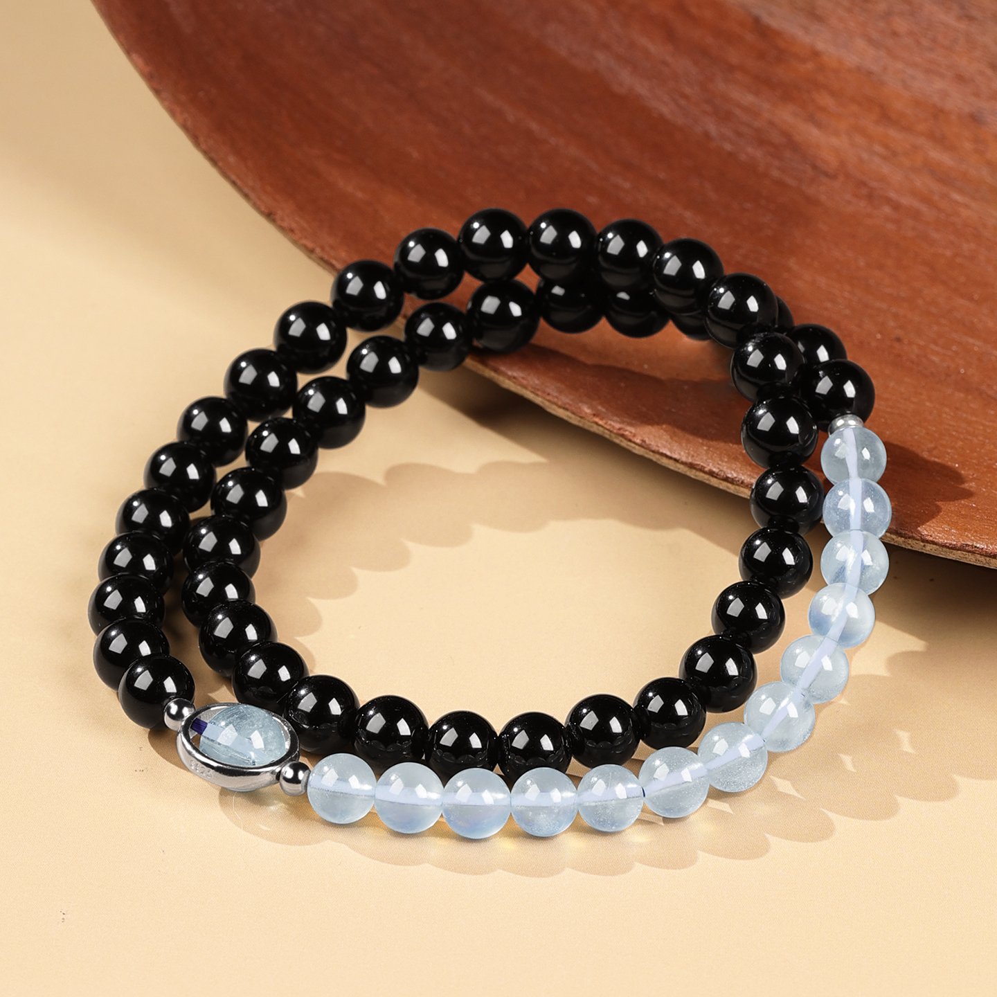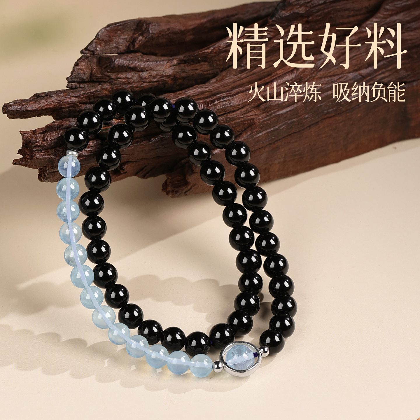 天然黑曜石手串男款海蓝宝手串正品官方旗舰店双圈手链女多圈补水